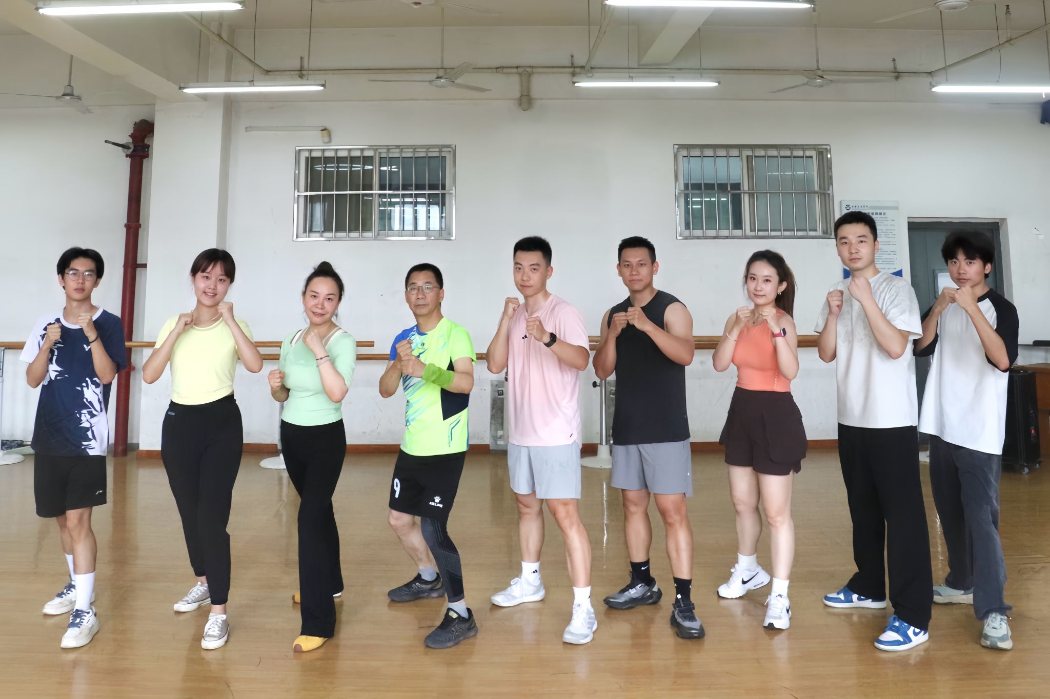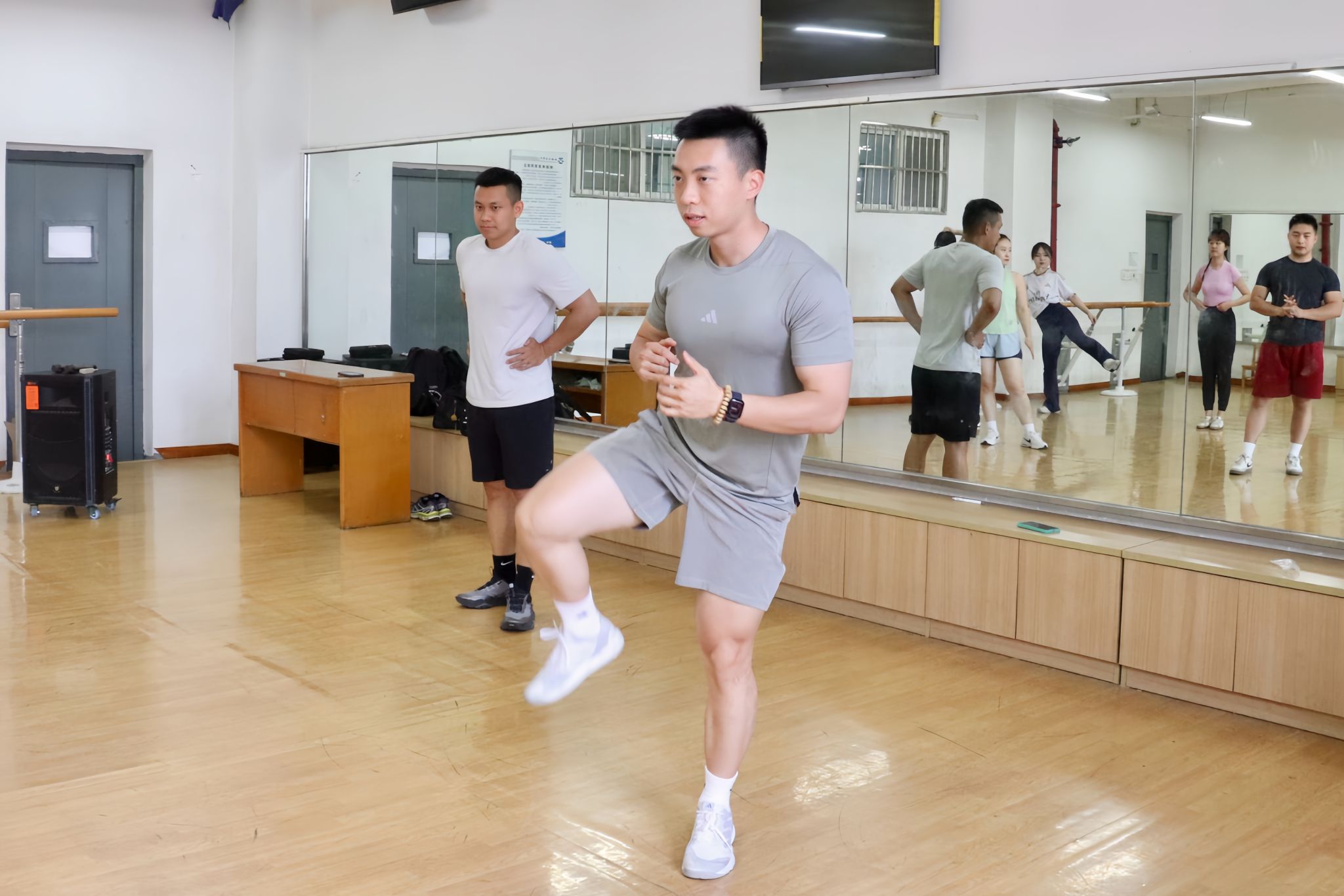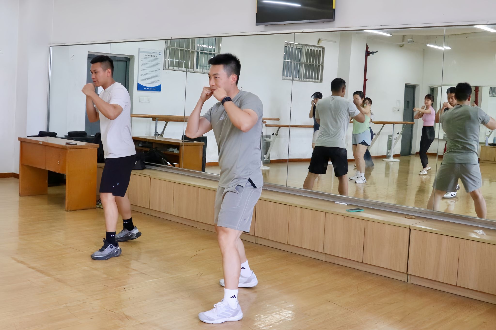 本期课程以搏击燃脂操为主,将拳击、中国功夫、跆拳道、泰拳等多种武术风格融合,在音乐节奏带动下快速提升心肺功能与肌肉力量。在集体节奏训练中,党员先锋带头发力,同学们团结协作、互相鼓励,在出拳与呐喊中释放心理压力,展现出奋发向上的精神风貌与良好的集体意识。
