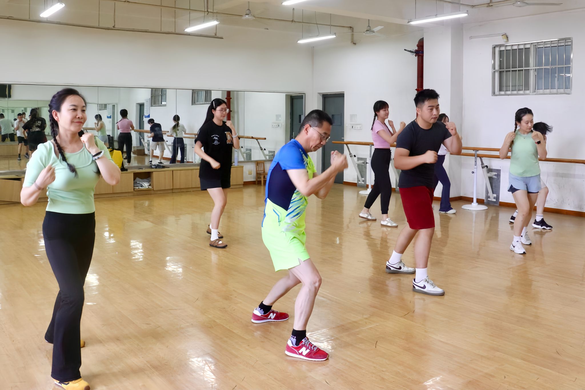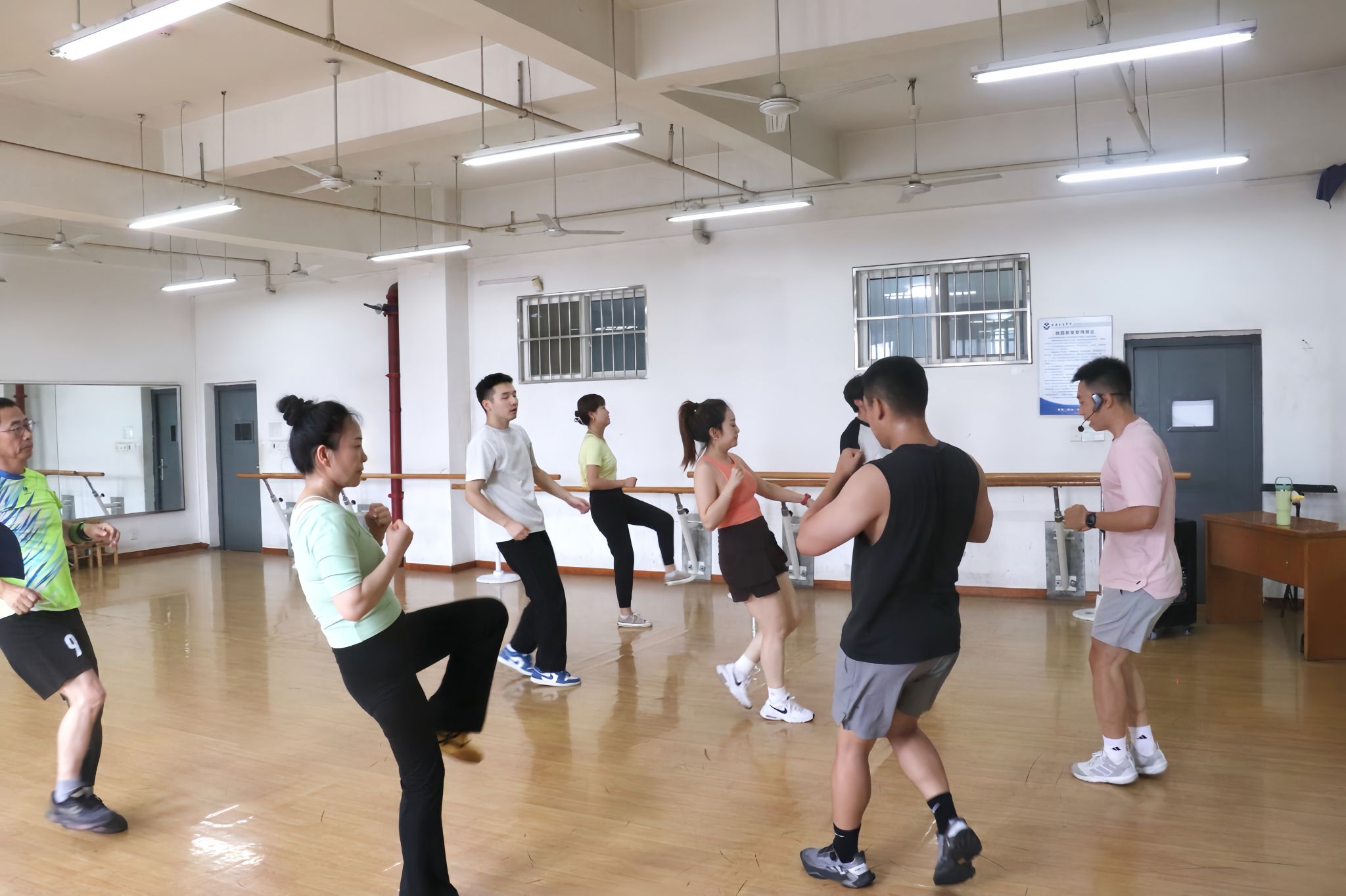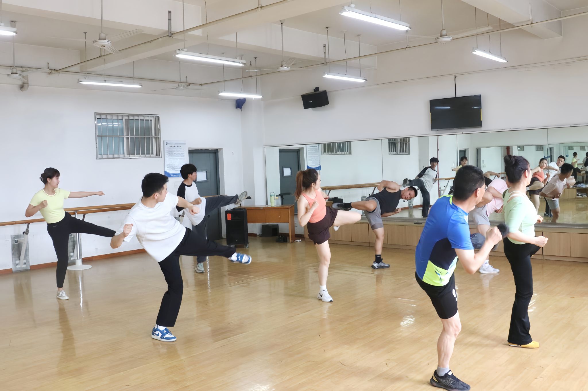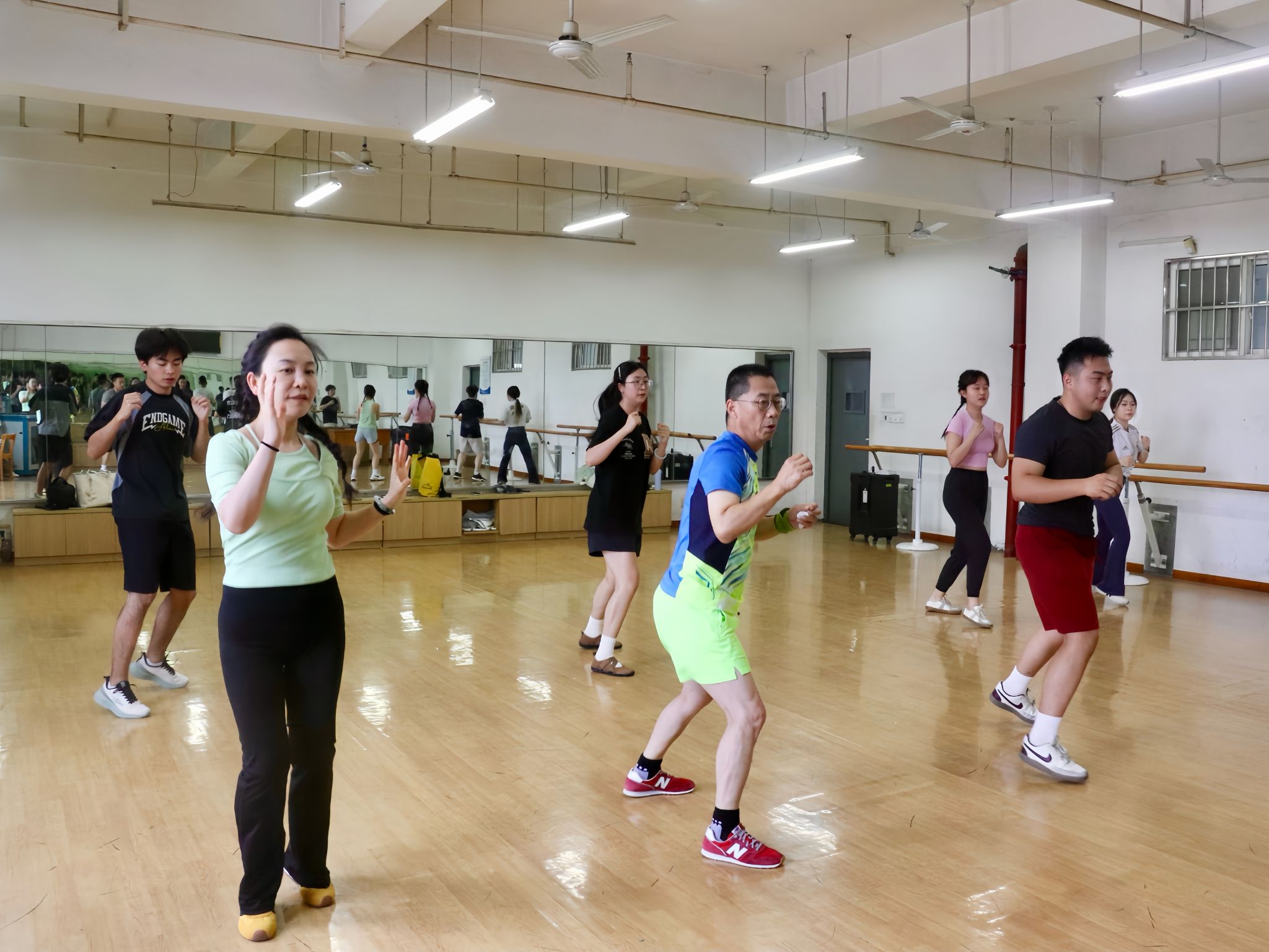 本期课程以搏击燃脂操为主,将拳击、中国功夫、跆拳道、泰拳等多种武术风格融合,在音乐节奏带动下快速提升心肺功能与肌肉力量。在集体节奏训练中,党员先锋带头发力,同学们团结协作、互相鼓励,在出拳与呐喊中释放心理压力,展现出奋发向上的精神风貌与良好的集体意识。