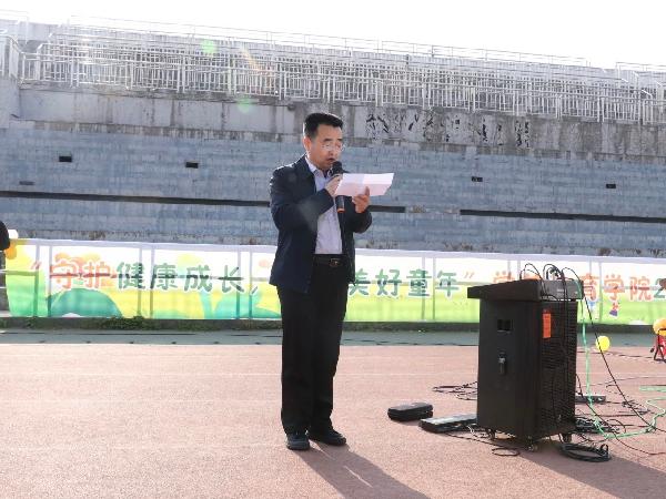 赛前,公司党总支书记刘爱霞、党总支副书记李东升、学工办主任韩亚萍、副主任张思纯、辅导员张重阳、杜芷歆出席了运动会开幕仪式。由员工乐手组成的闪耀乐队赛前活力献曲。李东升副书记宣布公司首届童年游戏运动会开幕。