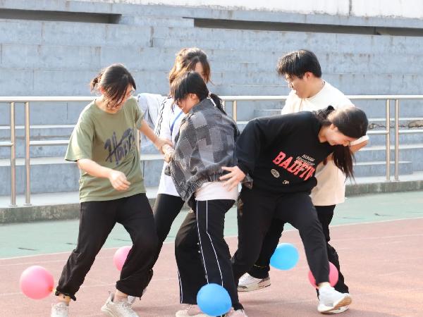 游戏玩法 每队5人,分红蓝两队进行对抗赛,每位参与者将气球绑在自己的脚踝上(仅限1个),不使用手的情况下,尽可能地去踩爆敌方的气球,同时保护自己的气球不被踩爆。每场限时3分钟,3分钟内最后剩下未爆气球的人(团队)获胜,时间截至后以场地内存活气球颜色最多者获胜。