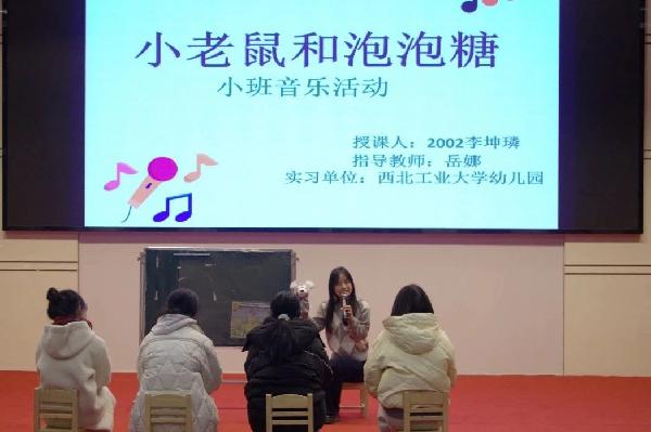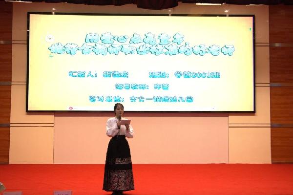 实习生汇报展示环节分为师德师风、集体教学活动、家园沟通、幼儿行为观察与分析四个板块。通过现场组织开展精心设计的教学活动,讲述对教育事业的热爱和坚守,分享家园共育中有效沟通的经验以及在实习期间对幼儿行为的观察分析与思考,全面体现了学前教育专业员工理论知识与教师技能储备在实践中的应用成效。