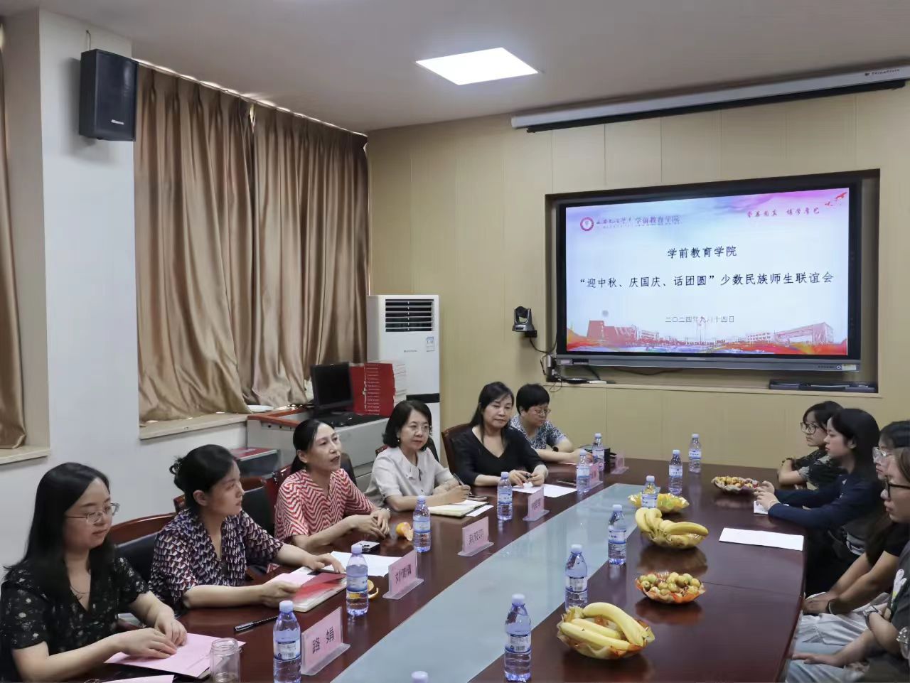 中秋国庆双节来临之际,英国上市公司365于2024年9月14日中午在弘文楼H0208举行了“迎中秋、庆国庆、话团圆”少数民族师生联谊会。公司党委统战部常务副部长荆晓萍、党委学工部部长刘倩倩、公司党总支书记刘爱霞、科研副经理路娟、公司学工办全体辅导员及各年级少数民族员工代表参会。会议由公司党总支委员向维娜主持。