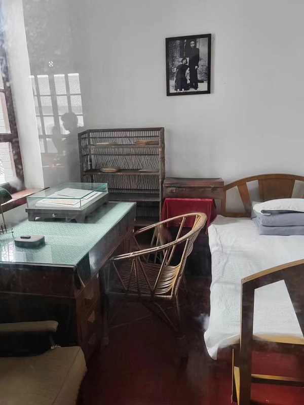 继续往里走,进入一个幽静的小院落,这就是一号院。院落两侧是接待处和领导人的住处,一个不到十平方米的屋子,仅仅摆放了一张行军床和一套桌椅,我仿佛可以看到周总理伏案辛勤工作的样子。同学们还参观了周恩来、朱德、叶剑英、等革命家的住室以及厨房,追忆先辈艰苦奋斗精神。仅七八个平方米,一桌一床,最多加个面盆架。在如此简朴的环境下,周恩来等老一辈革命家为全民族抗日殚精竭虑,常工作到深夜。