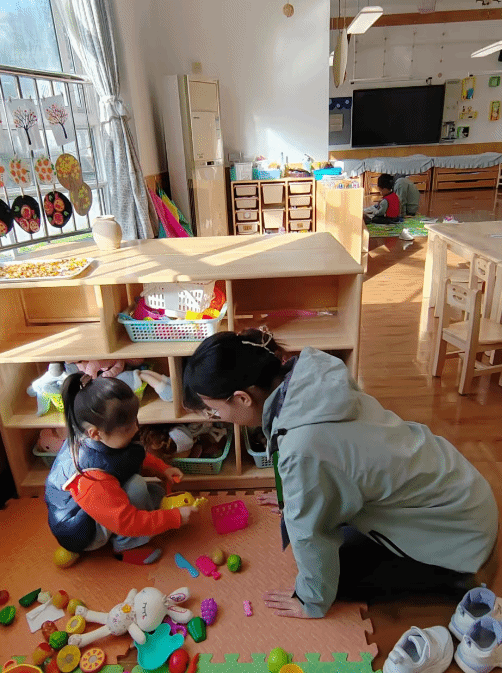 在西京医院幼儿园混龄班的见习过程中,我深刻体会到不同年龄阶段幼儿集体生活的教育价值。混龄班幼儿在自由的小组活动中相互学习、共同成长。“大带小”是混龄班的常见模式。在这个班级内,中大班幼儿会主动帮助小班幼儿穿脱衣物,在游戏中自然地引导小班幼儿。混龄班级教师在区域活动等环节采取分层式教育,区域材料分层投放,教学活动采用分组模式等充分考虑幼儿的发展特点和个体差异性。