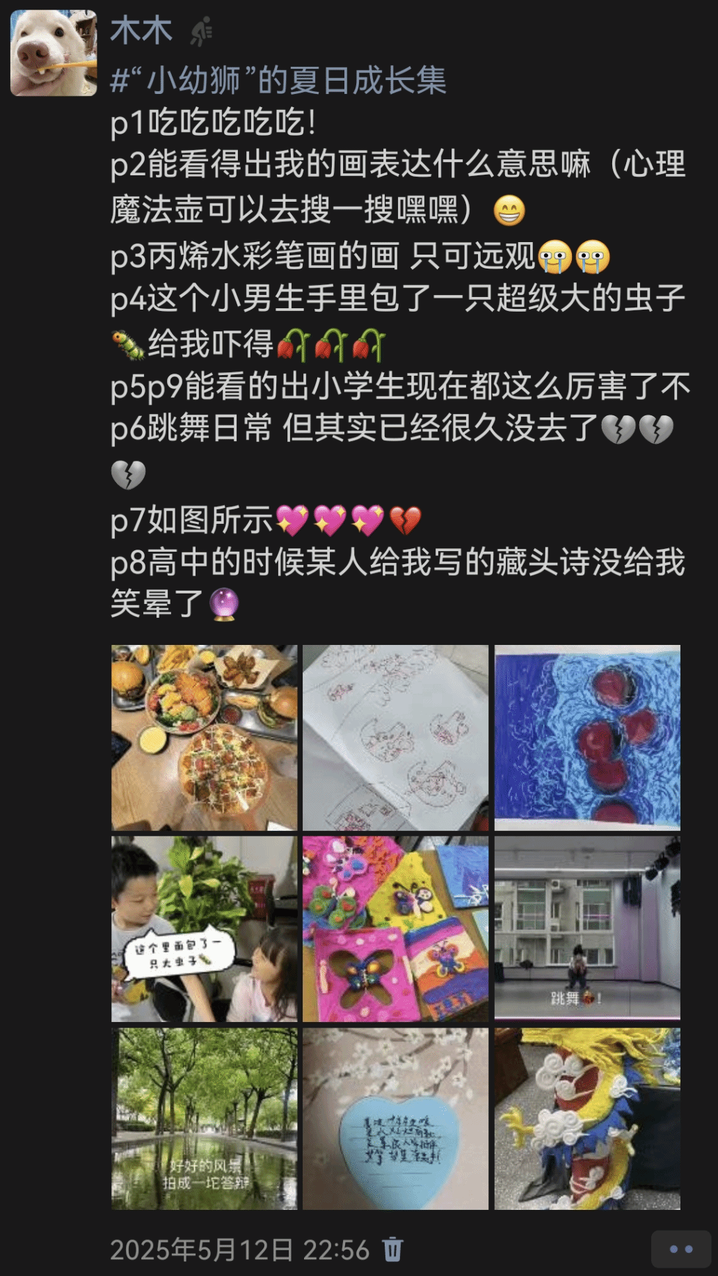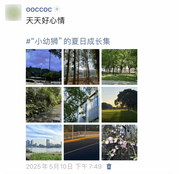 当镜头遇见童心,当成长邂逅夏日, 5月8日——23日,英国上市公司365举办心理季特色活动之“‘小幼狮’的夏日成长集”五日创意打卡。此次活动反响热烈,共收到百余份投稿,“小幼狮”们以镜头定格生活点滴,用文字记录成长轨迹。从剪纸课的指尖翻飞,到理论课堂的笔耕不辍;从琴房里流淌的动人旋律,到幼儿园中暖心的互动……每一帧“九宫格”都流淌着学前人对专业与生活的热爱和坚持。在这蝉鸣热烈的季节里,我们见证了无数“小幼狮”如向日葵般坚定向阳的身影——他们对学前教育的赤诚初心,对生活的独特感悟,在每一次快门按下时熠熠生辉。