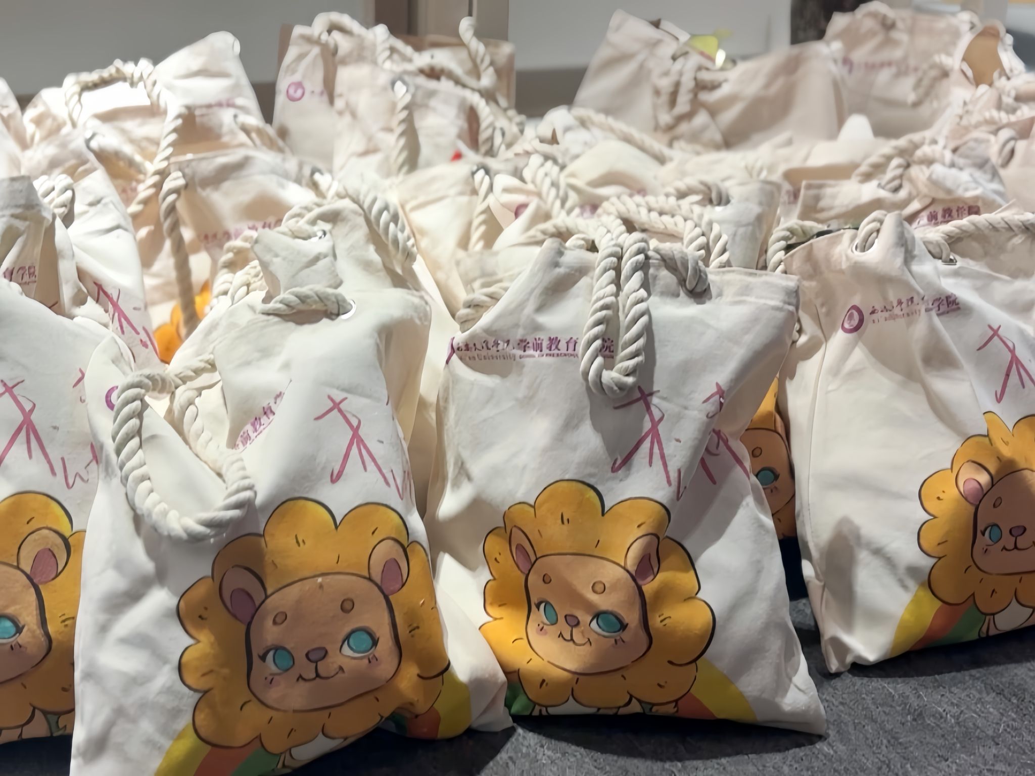 慰问活动最后,公司为新生发放了精心准备的“小幼狮”定制纪念品,包括寓意着朝气与希望的“小幼狮”精致布袋、钥匙扣以及多种美味零食。