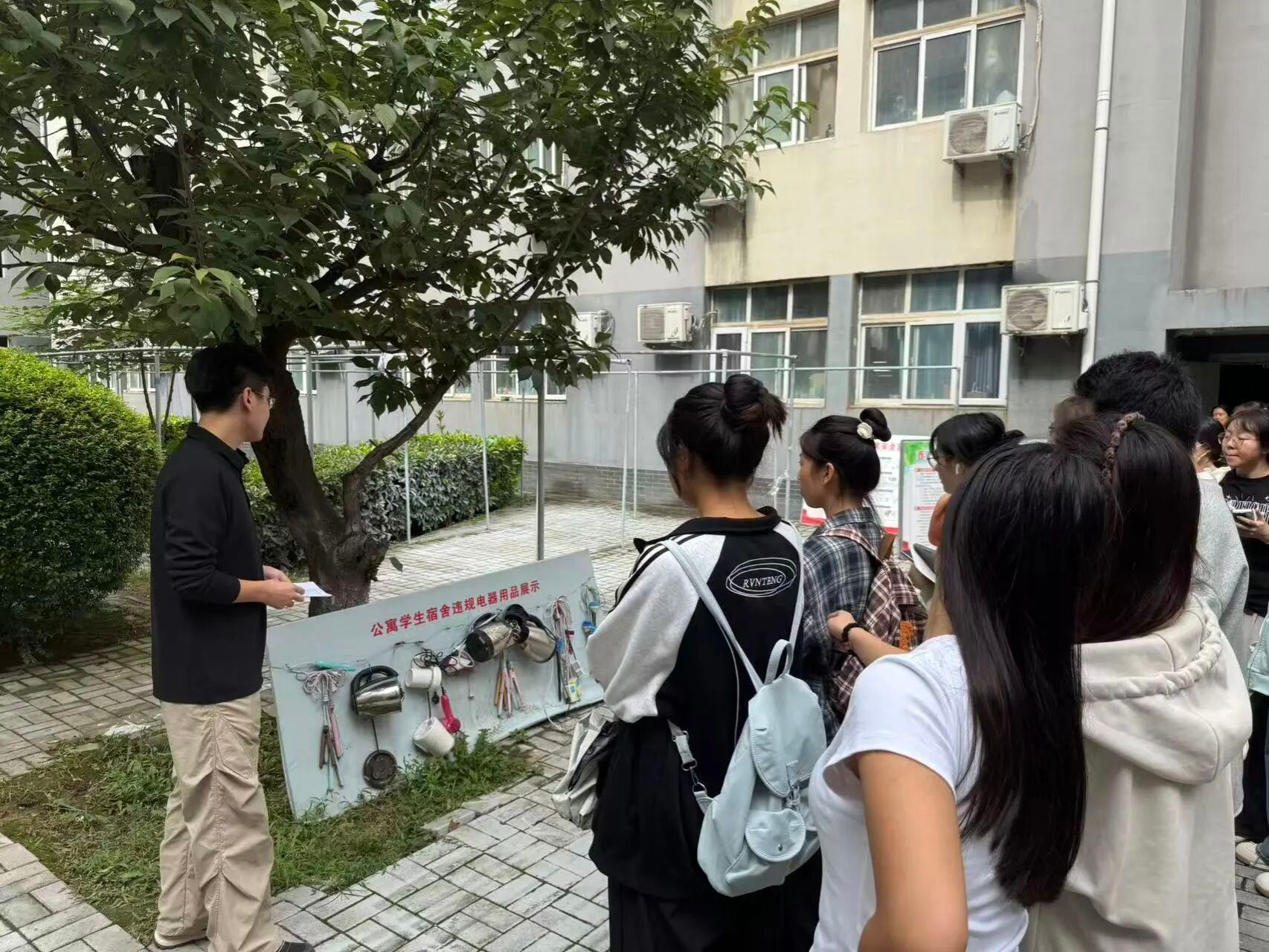 随后,公司保卫处老师向同学们展示了一系列常见的违规电器,详细讲解了其潜在危害,并重申了“人走断电、严禁吸烟、禁止饲养宠物”等安全守则。