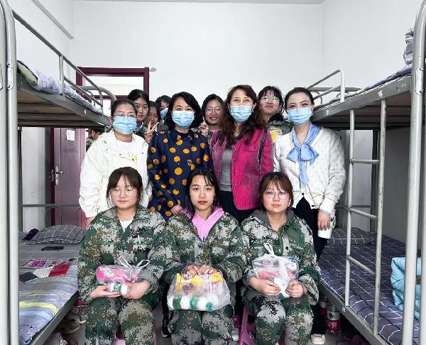 少年当磨砺,军训正当时。为了解掌握2022级新生军事训练情况,鼓励同学们保持良好的训练状态,圆满完成军训任务,5月10日上午,党总支书记彭小芸、党总支副书记刘爱霞、学工办主任张熔、办公室副主任韩亚萍一行前往周至军训基地看望慰问参训新生。