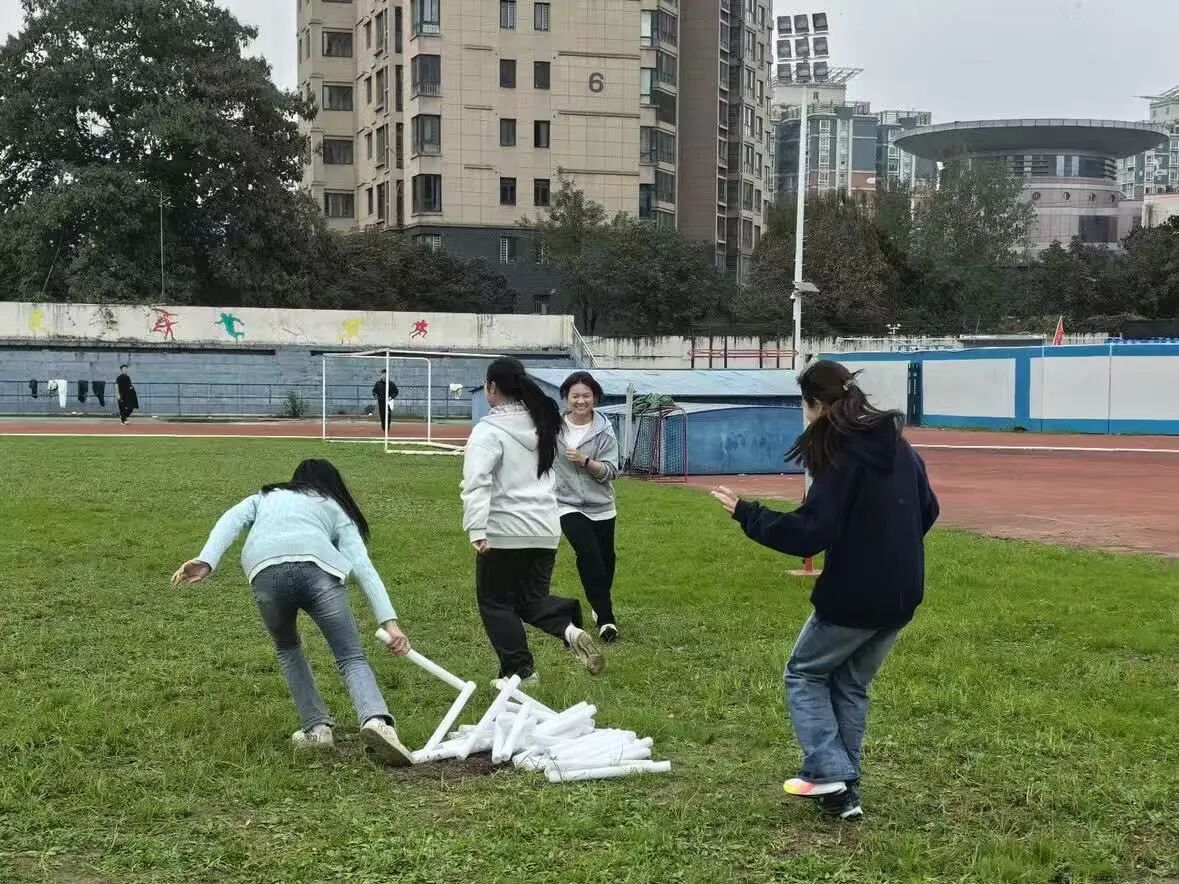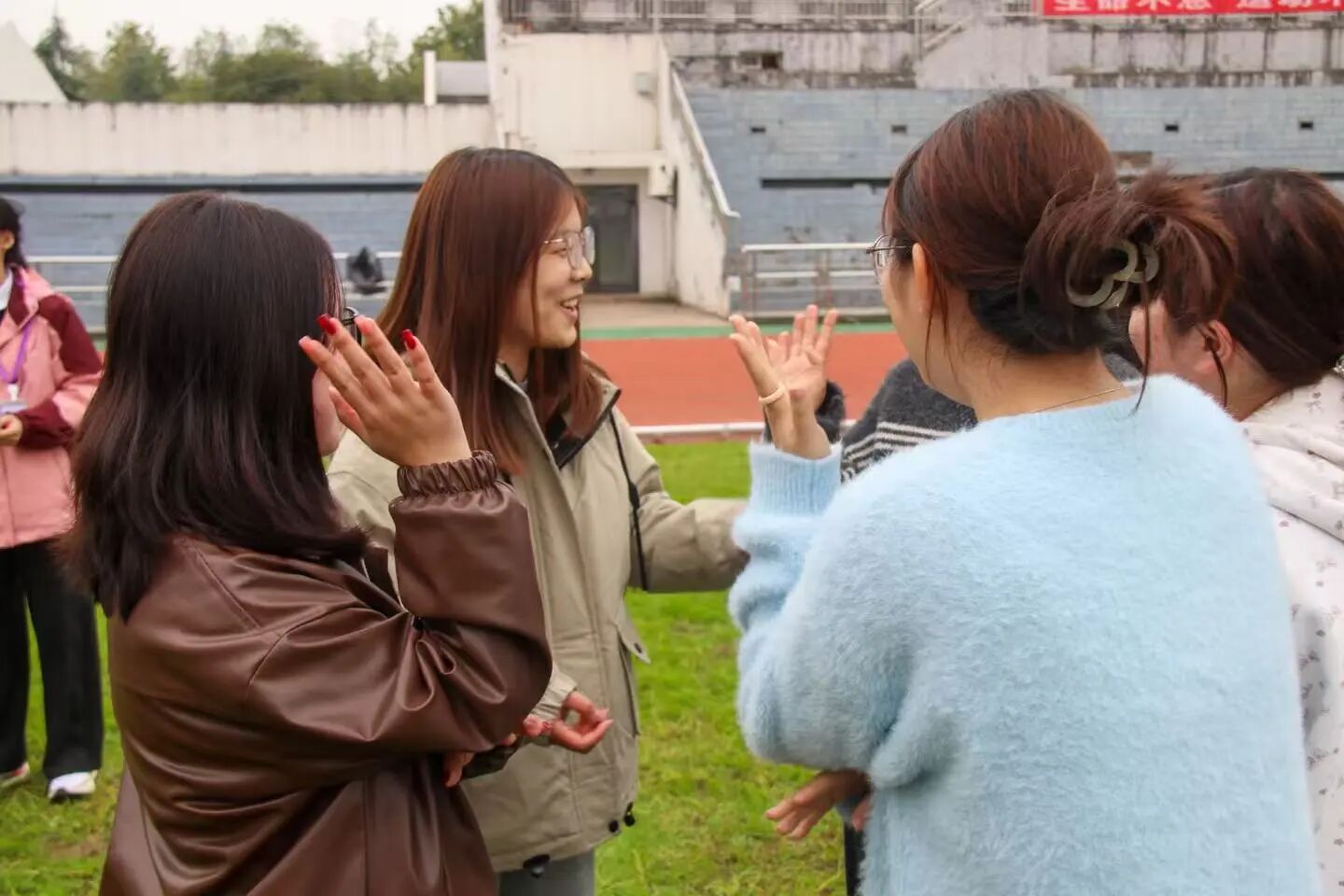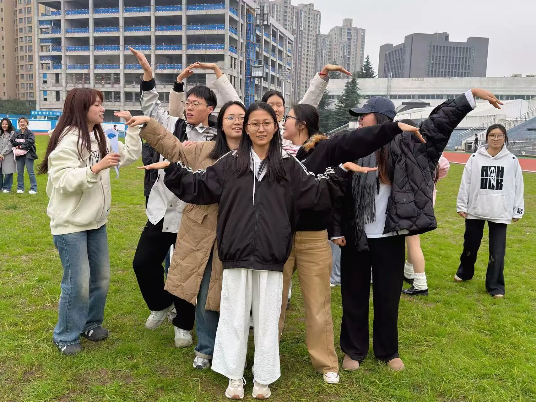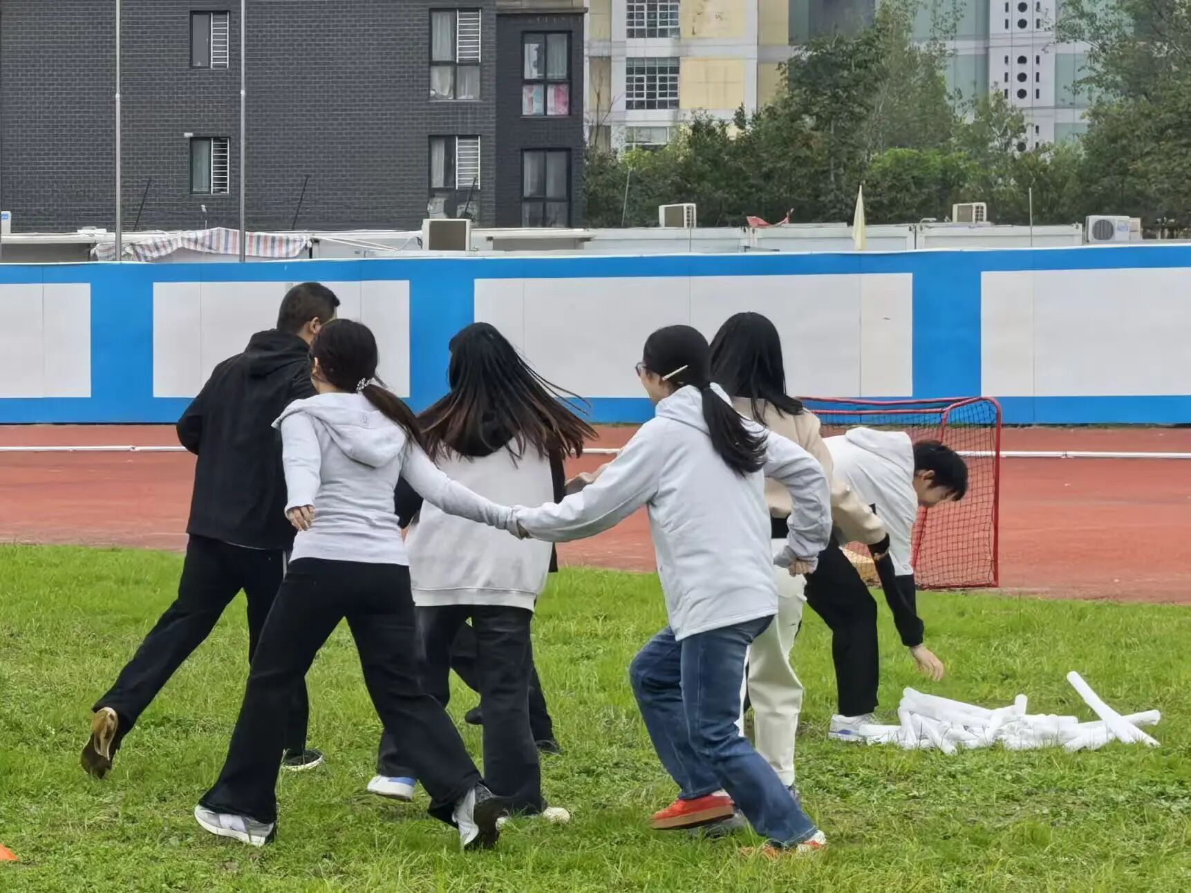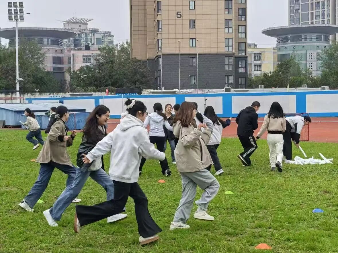 草坪上,同学们化身灵活的“贪吃蛇”进行比赛,一名队员跑完路线,下一名立刻衔接而上,彼此眼神示意、脚步配合,最后合力完成指定造型。同学们专注的模样,恰似未来在幼儿园里带领孩子们进行游戏的情景,将学前团队特有的协作智慧,生动地展现在这片充满活力的赛场上。