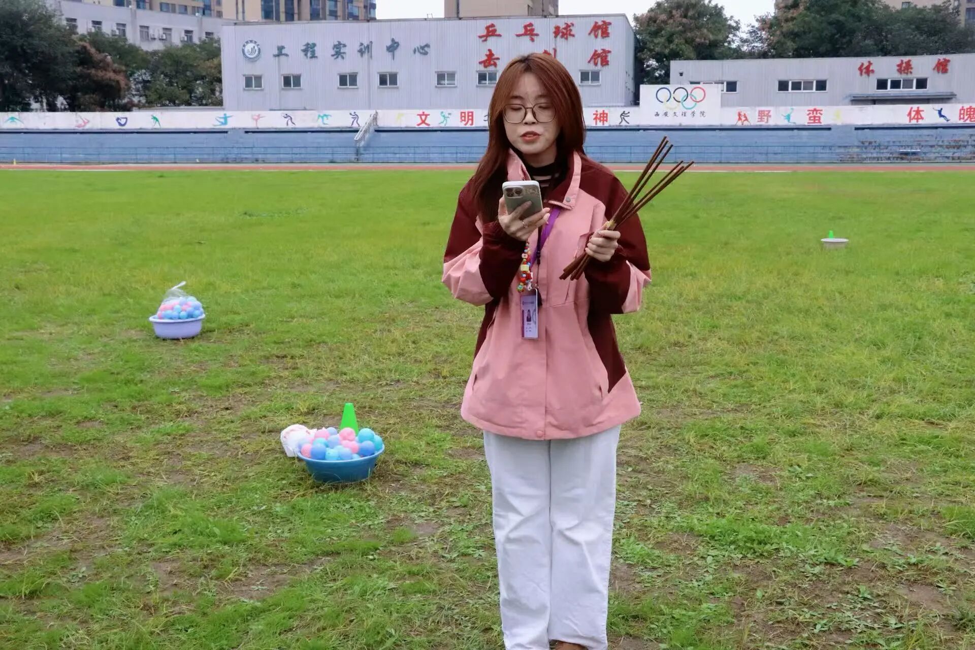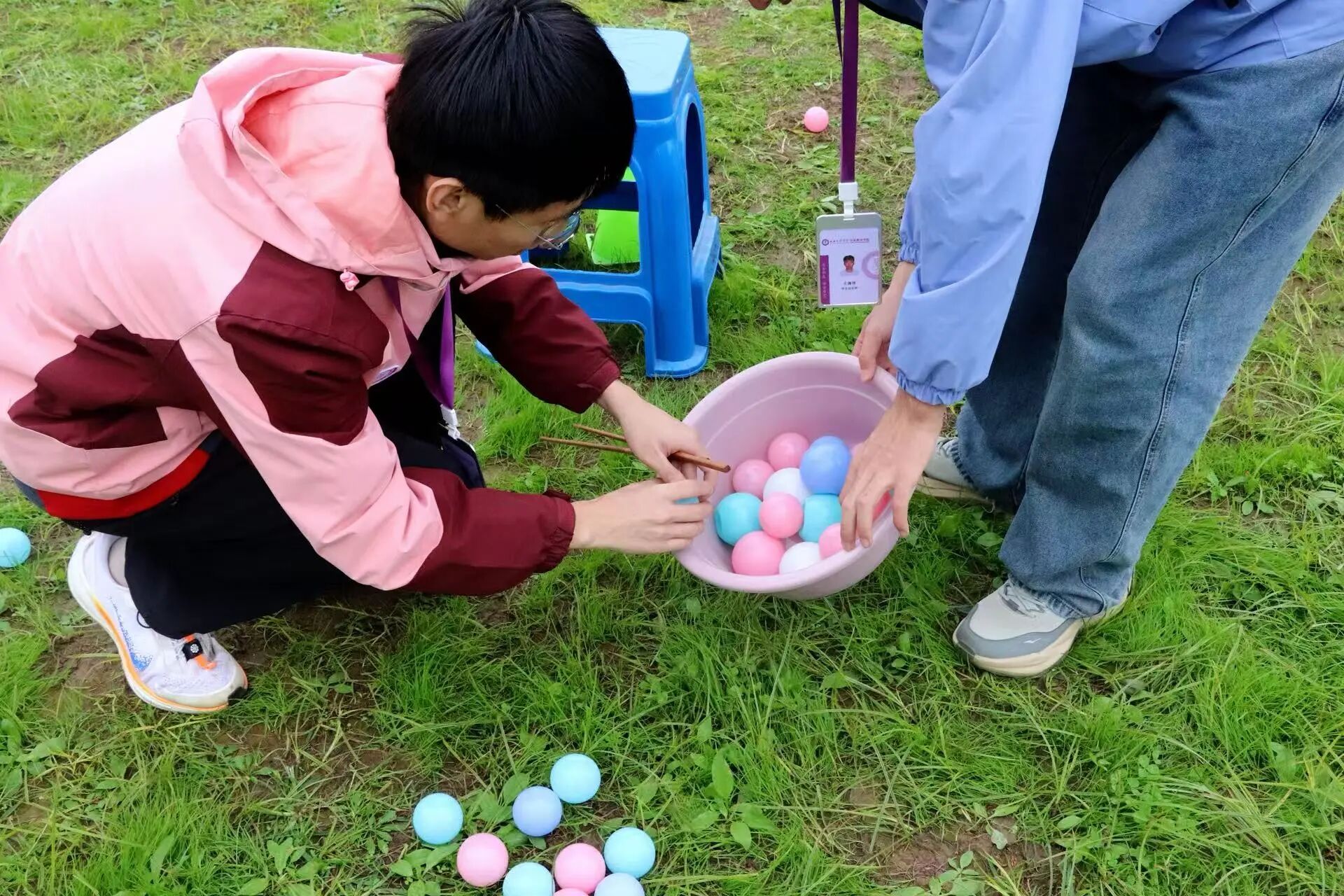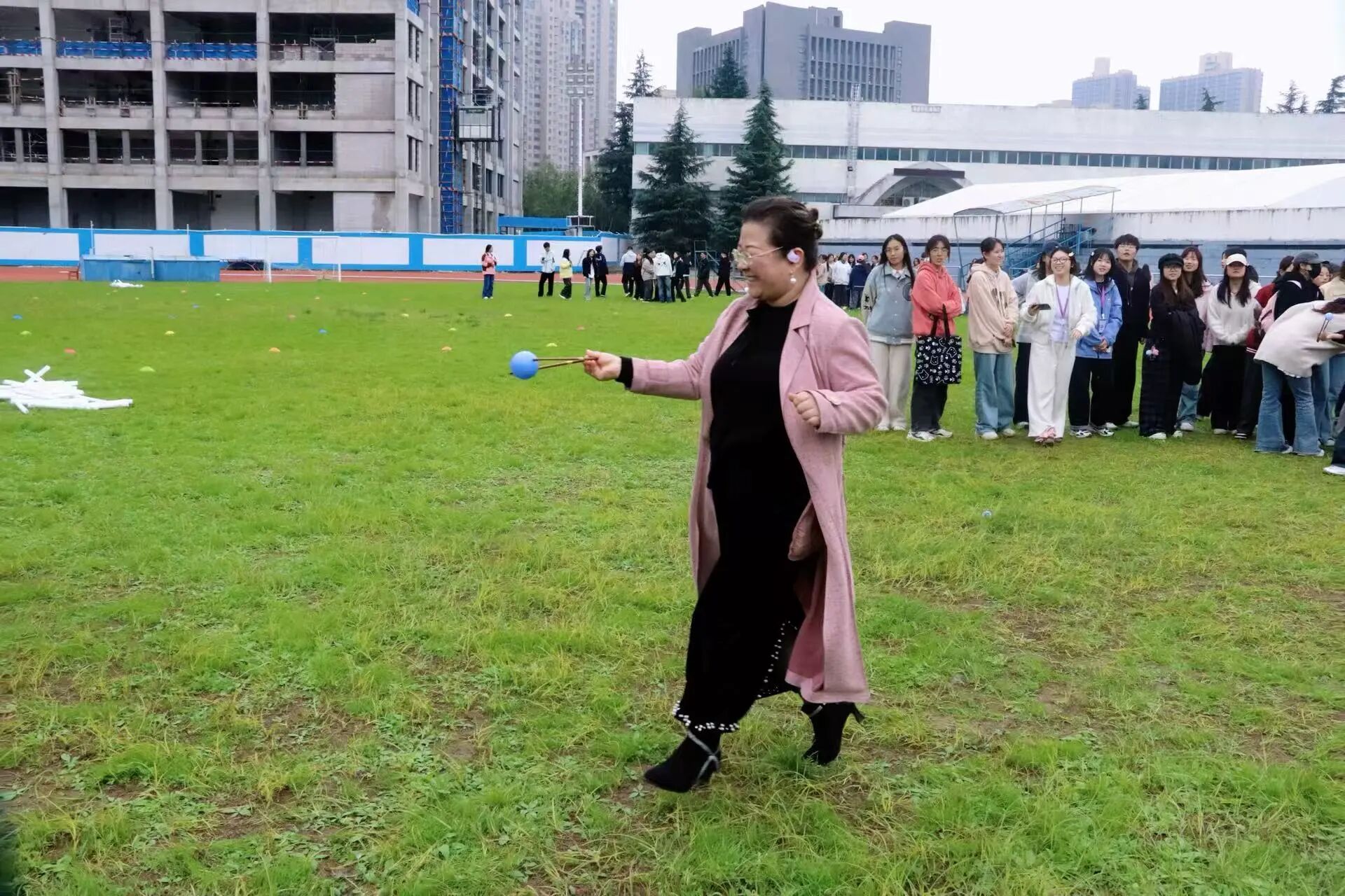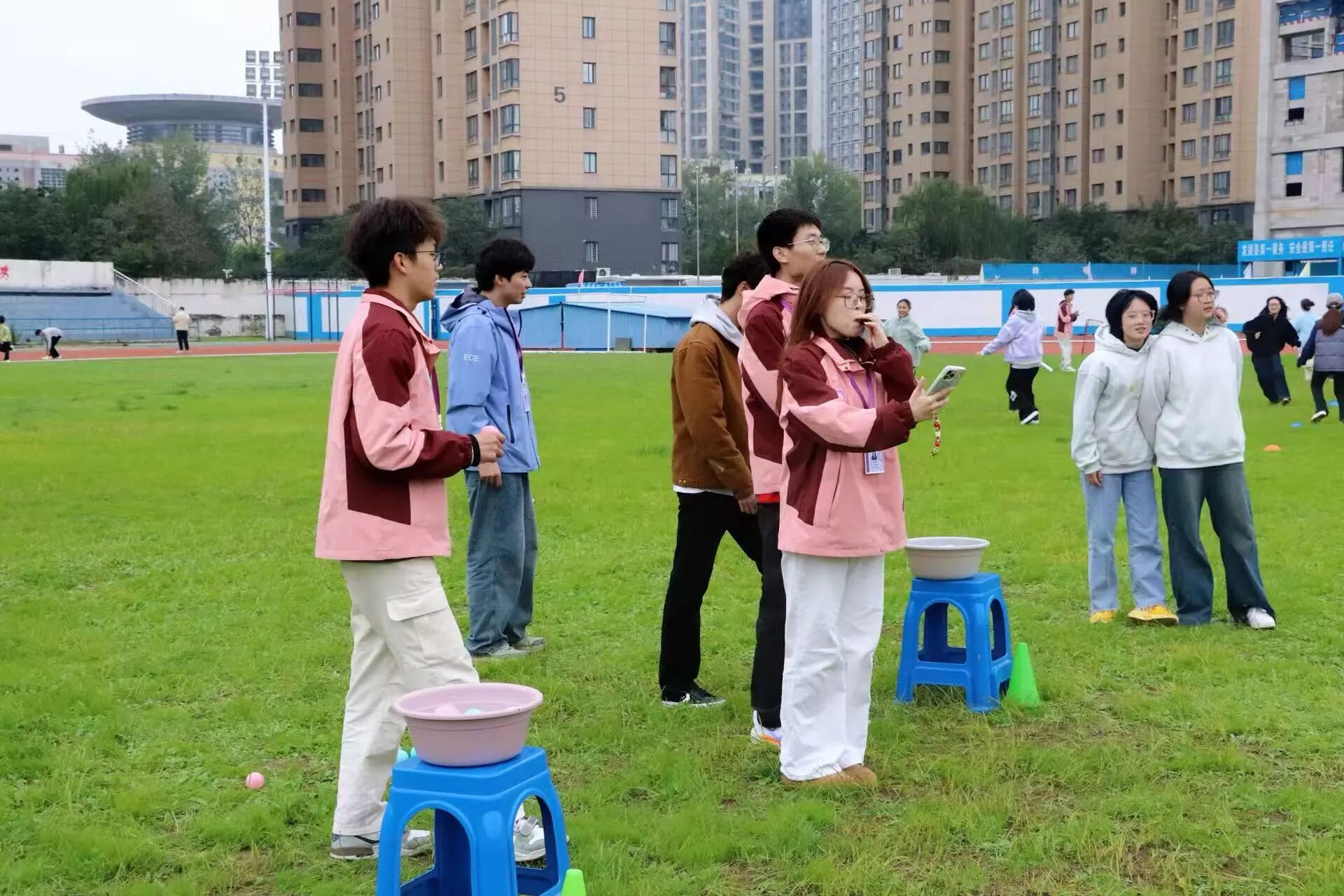 音乐响起,同学们小心翼翼夹那轻飘飘的发泡球。有人屏气凝神挪步,有人因球滑落而轻呼,接力的瞬间,眼神里满是紧张与期待,每一次成功传递都伴着低低的欢呼,将学前专业对精细动作的锤炼,化作了赛场上的趣味篇章。