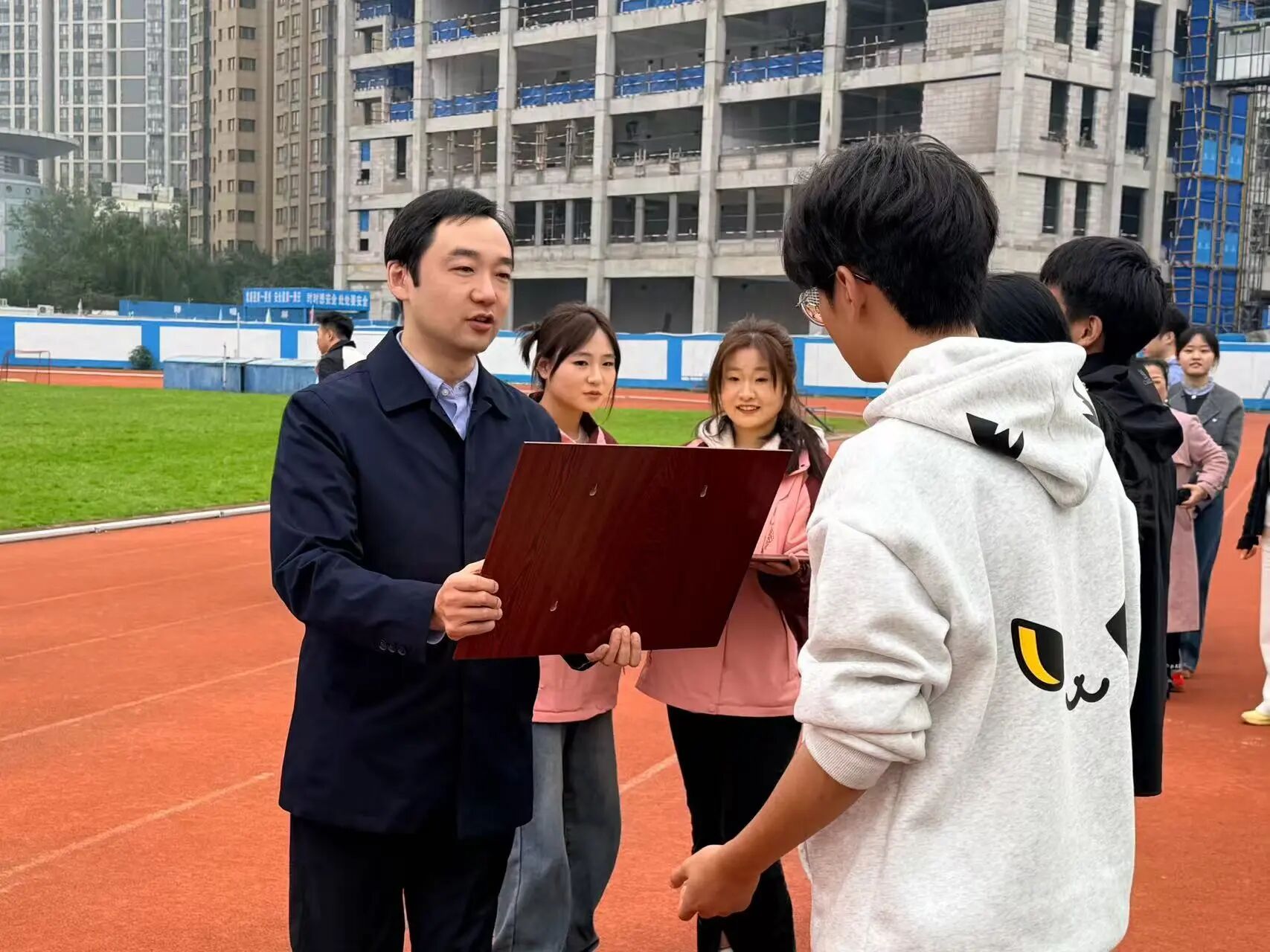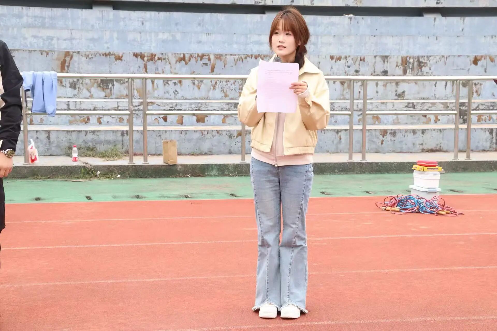2025级新生代表陆佳瑶同学上前发言,她用响亮的声音传递出全体新生对这场运动会的期盼与热情,字里行间洋溢着青春的朝气。
