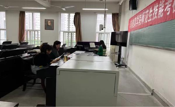 考核开始前,全体评委召开考前考务会,会议由艺术教学部主任崔纬老师主持,她从考核方式、考核内容及打分标准等几个方面对全体评委进行了相关培训,并指出此次基本功考核的重要性。 此次考核内容分为乐曲演奏和儿歌弹唱两项。其中乐曲演奏,已获得公司认定的钢琴考级四级及以上证书的员工此项免考,只完成儿歌弹唱项;未获得相关证书的同学,评委老师从自选的两首乐曲中指定一首进行演奏。儿歌弹唱部分以现场抽签的形式开展,员工抽取曲目,边弹边唱。评委老师对员工的弹唱进行了点评与指导,给同学们提出了宝贵的意见,以提高同学们的专业技能,为以后的学习和工作打下基础。在考核过程中,公司经理蔡军、党总支副书记刘爱霞、副经理赵四鸿、教学副经理路娟、组织员韩军在各个考场进行了视察,并提出建议。