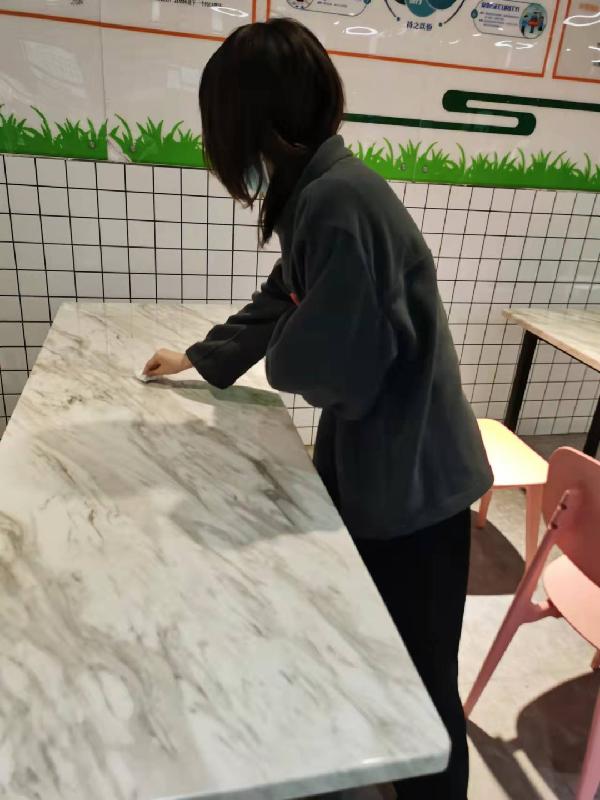 三月雷锋月,她们积极响应,疫情期间封校不隔爱,食堂作为老员工在校的主要生活区之一,卫生环境尤为重要。虽然在公司的号召下堂食人数大大减少,但食堂的卫生消毒工作仍旧不能松懈。因而以她们组织宿舍同学在食堂帮助工作人员对桌面进行清洁和消毒,并引导人群保持间距,单向就餐。