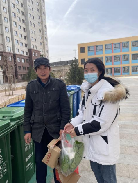 在雷锋月,她积极参加帮助孤寡老人的志愿服务活动。某天 她在出门的时候遇见了这位老爷爷,他衣衫褴褛,用苍老的手,费力的在垃圾桶里翻找着。她不禁泪目,岁月的流逝压垮了老爷爷的脊背。见此情形,她帮助老爷爷拿出他需要的纸盒,塑料瓶;并在第二天买了一些水果蔬菜,拿着家里不用的纸盒及各种瓶子,早早的在垃圾桶那里等待老爷爷再次到来。当她把东西递给他时,爷爷的眼睛里泛出泪花。也许经常有人向他表达善意,但她知道,尽自己所能去帮助别人,一定不会有错。