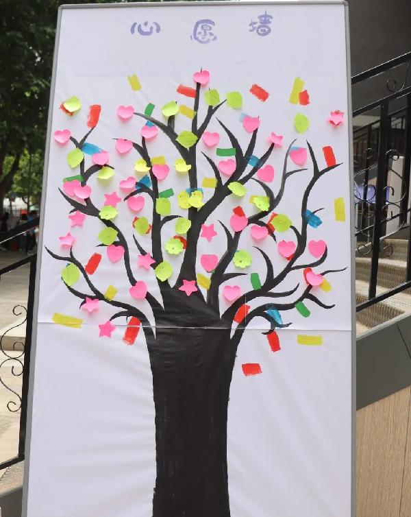 同学们在彩色的便利贴写下烦恼与希望,放飞的那一刻是心灵的释放,有人解答了你的疑问,有人给了你正能量,你不知道那是谁,但在心愿树上承载着真诚和善良。