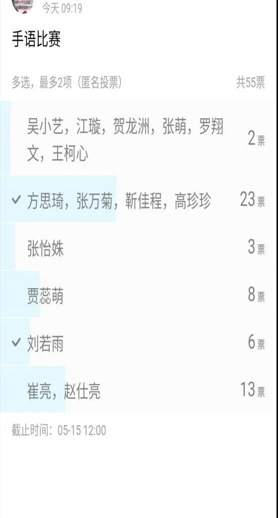 5月10日~14日,班级初赛以录制视频的形式进行,通过钉钉直播、QQ电话屏幕分享等多种方式向班级同学展示,每个班投票选出1~2组进入决赛。