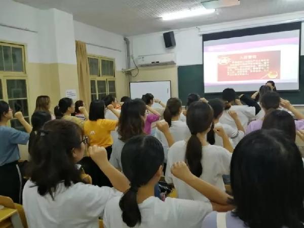 活动伊始,同学们在班长的带领下齐唱团歌,整个过程中,同学们聚精会神,认真对待 ,积极交流发言,共同理解“不忘初心,牢记使命”的伟大精神,最终高效的完成了本次活动。