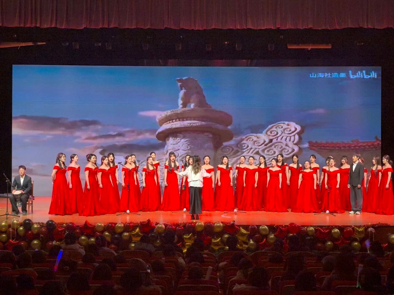 全体同学齐声高歌,将晚会推向高潮。每个音符都满载对祖国的赤诚与眷恋,既有山河壮阔的豪情,也有学前学子的担当。这是“红烛幼教”党建品牌的生动实践,展现“小幼狮”们“心怀家国、育见未来”的志向。