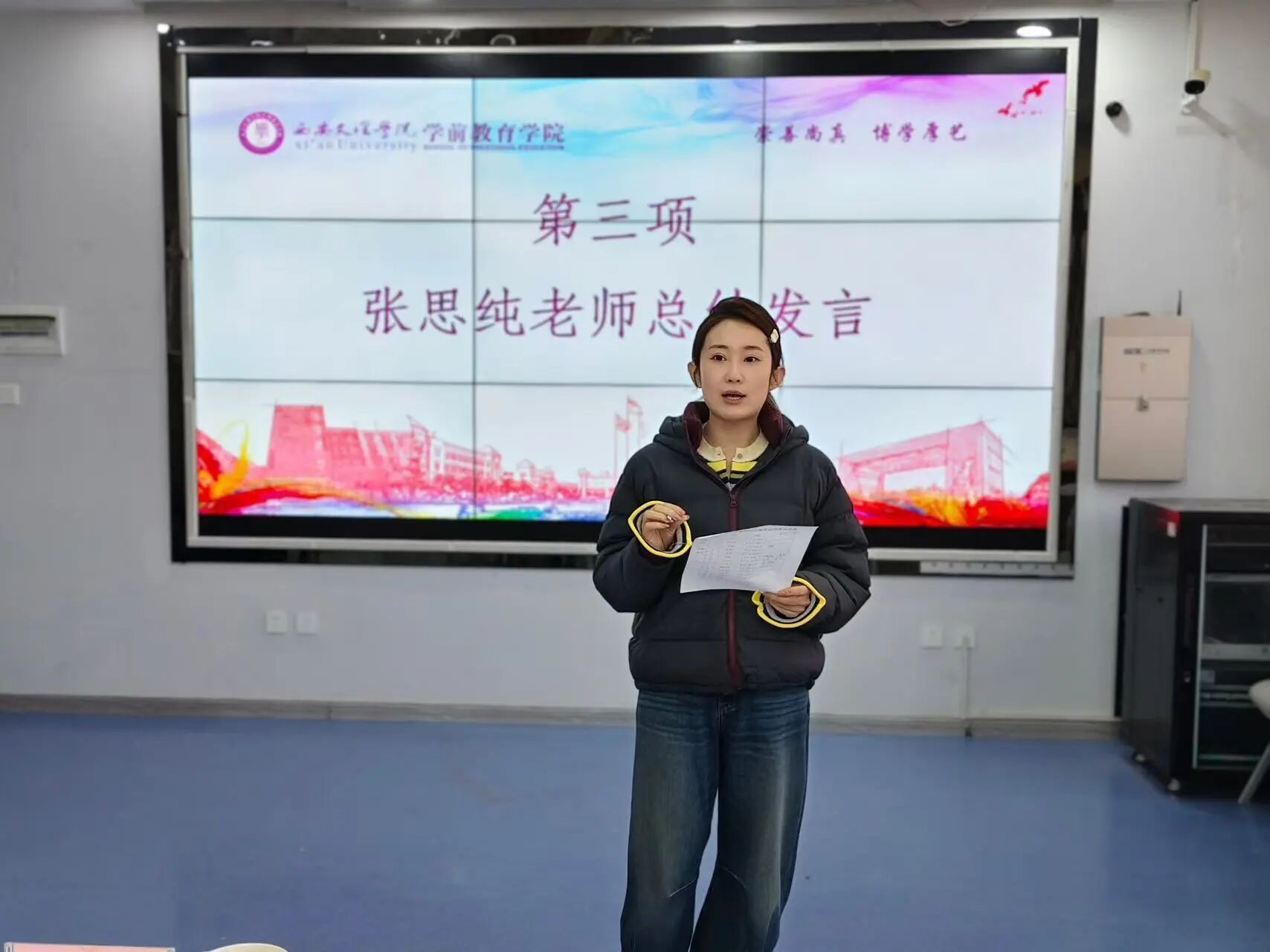 进入面试考核环节,参选同学依次进行个人陈述,评委老师们根据同学们的表现进行针对性提问,从宣讲思路、表达能力等多个维度进行综合考评。同学们从容自信的表达、富有创意的宣讲设计,展现了学前学子的青春风采与专业素养。