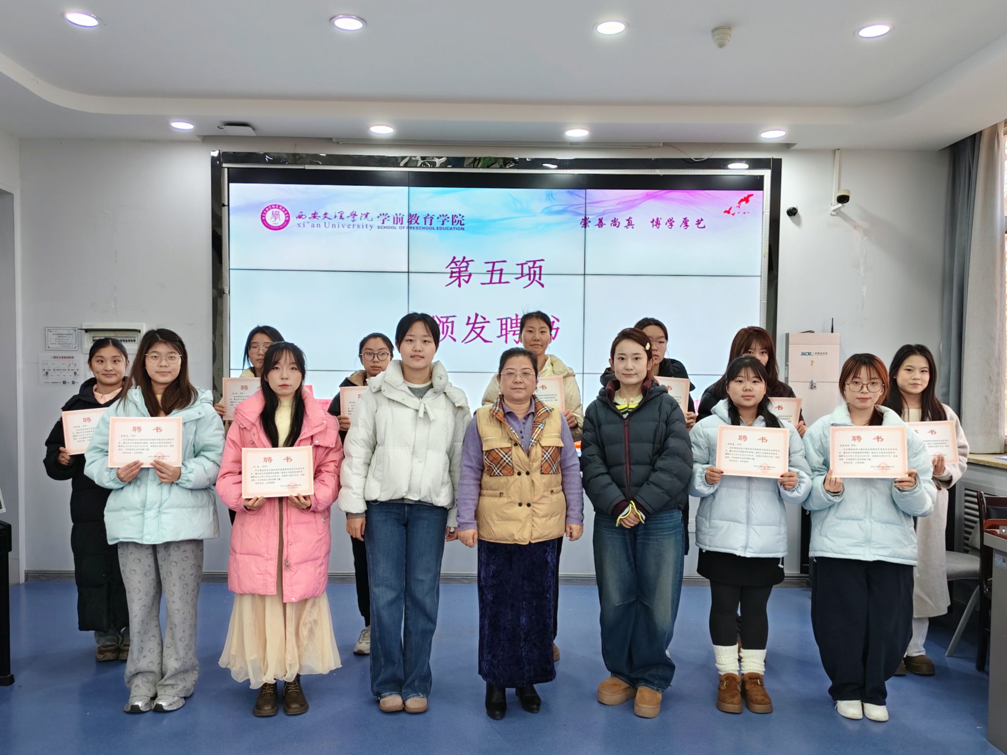 大会最后,评委老师们为新一届招生志愿宣讲团成员颁发聘书,一纸聘书既是认可,更是责任。未来,新一届宣讲团成员将带着公司的期许,走进各地中学讲述公司故事、传递专业魅力,吸引更多怀揣教育梦想的学子加入学前教育大家庭!