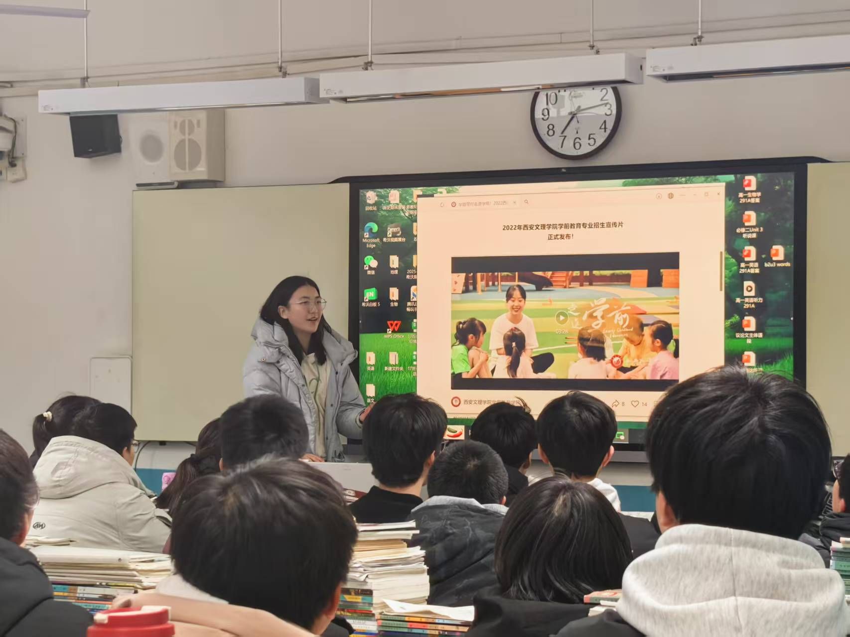 再次踏入西安市五环中学的校门,熟悉的草木与砖瓦,将我拉回那段充满朝气的青春岁月。这次重返母校于我而言,是一场意义非凡、无比珍贵的旅程。活动现场,我先向学弟学妹们介绍了公司的地理位置、学科设置以及丰富的教学资源等基本情况,随后着重讲解了学前教育专业的课程体系,以及免费师范生的就业优势。面对大家关心的考试与报考问题,我也分享了自己的经验和实用技巧,强调高考的重要性,传授备考策略,同时提醒大家关注兴趣爱好,做好职业规划,以便更好地选择专业。在宣讲过程中,我能真切感受到学弟学妹们对老员工活的期待与好奇。他们积极提问,眼中闪烁着强烈的求知欲,这股学习动力令人振奋。此次宣讲,不仅是一次招生宣传,更是一场梦想的传递。我由衷希望,我所分享的内容能给他们带来启发与帮助,让他们在未来的学习生活中更加自信从容,向着自己的目标稳步迈进。