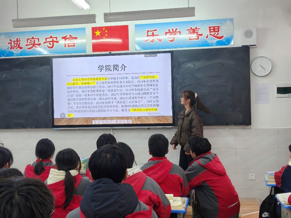 本次活动,我怀着激动的心情回到了我的高中母校宁强县天津高级中学,进行了招生宣讲。站在熟悉的讲台上,看着台下那一张张充满期待的面庞,仿佛看到了曾经的自己。