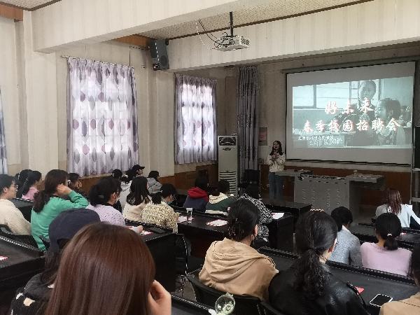 宣讲会上,赵晓丹老师从在线教育行业的发展前景,到好未来教育集团具体业务,给同学们进行了讲解,使她们知道了学而思培优、学而思网校等都是该集团旗下的业务品牌。最后,赵老师对大家最感兴趣的岗位任务(在线辅导、社群运营、家校沟通)、任职要求、薪资福利等作了详细介绍。她还谈到,集团里过节福利很多,晋升空间也很大,是值得同学们选择的就业平台,希望能够给大家多提供一份就业选择。