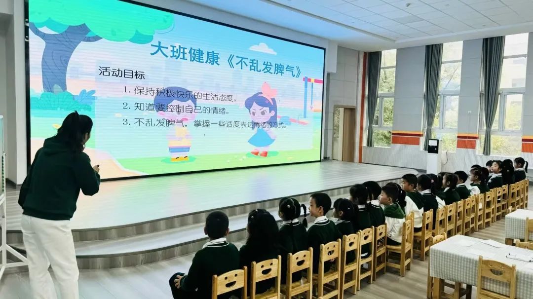 师生共同观摩了两名幼儿园青年教师展示的体育教学活动《好玩的垫子》和心理健康活动《不乱发脾气》。
