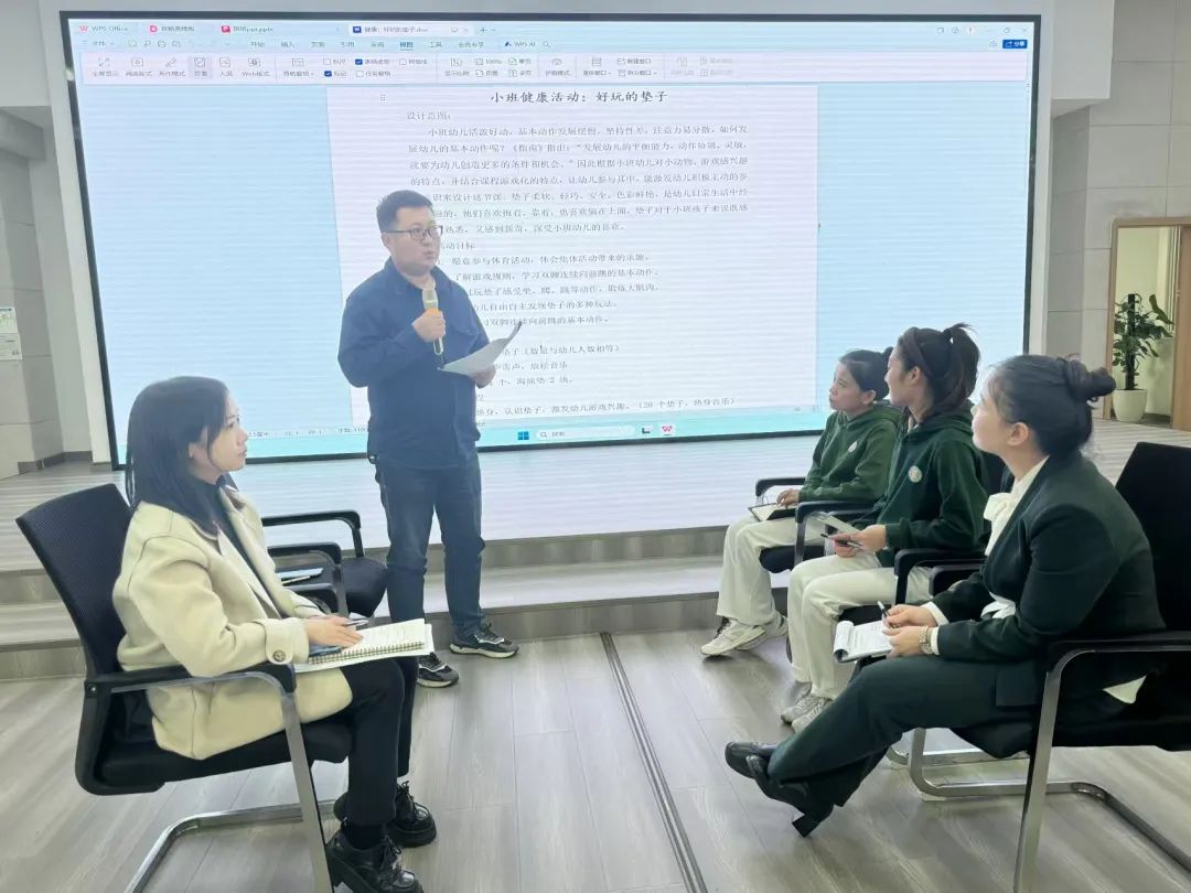 最后,王华婷、唐英和赵四鸿分别对活动进行点评和解析,赵四鸿结合展示课内容,依据《纲要》《指南》,开展了健康领域公司产品活动游戏化设计与实施的细致指导。