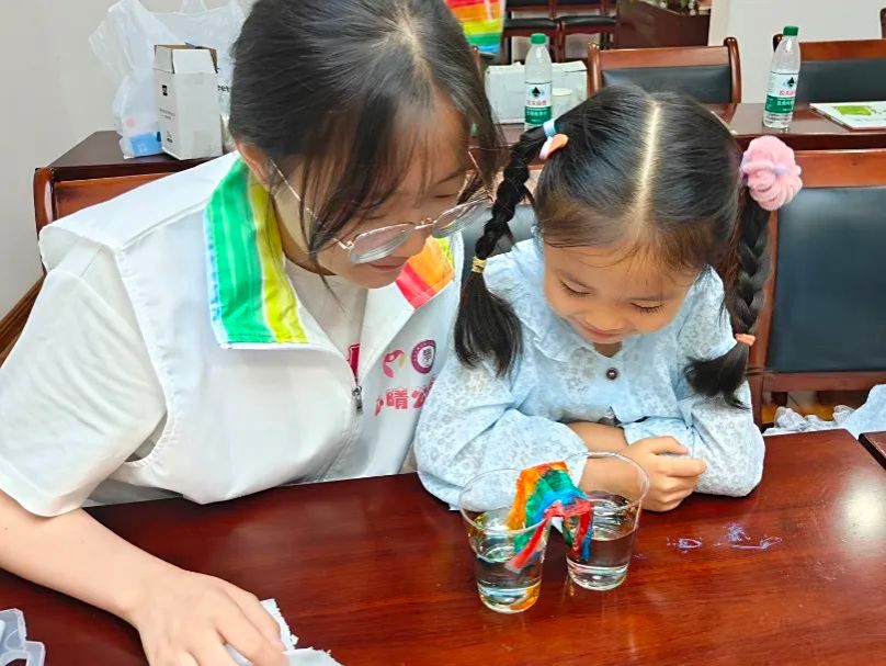 在江林新城北社区,科学实验激发了好奇心,手工创作锻炼了动手能力,绘本指读则打开了认识情绪的一扇窗。团队成员细致入微的观察与陪伴,让活动充满温情。