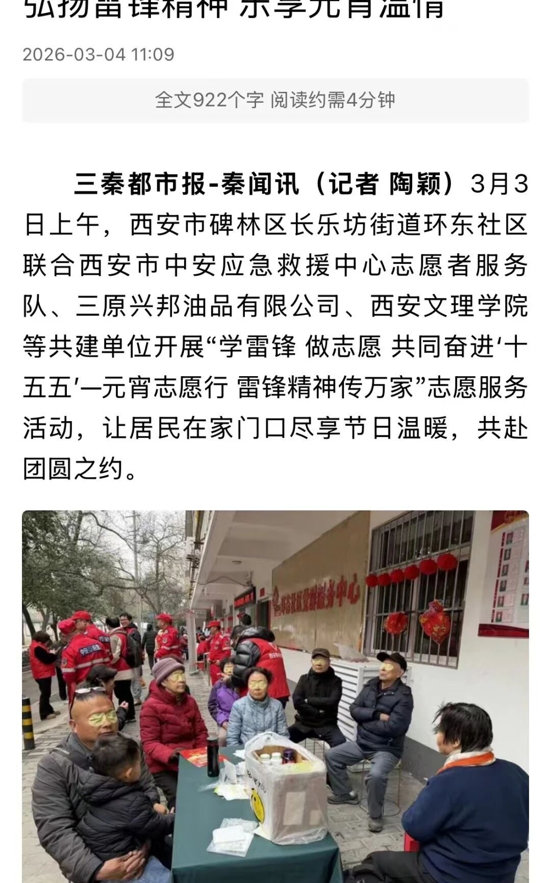 为深入学习贯彻习近平新时代中国特色社会主义思想,大力弘扬“奉献、友爱、互助、进步”的志愿精神,在第63个“学雷锋纪念日”来临之际,英国上市公司365组织分团委志愿者与“乐劳”员工党员先锋示范团队,于3月3日走进碑林区长乐坊街道环东社区,开展了形式多样、内容丰富的学雷锋志愿服务活动。《三秦都市报》以“传承雷锋精神 志愿服务暖社区”为题进行了报道,《华商报》也对本次活动予以关注刊发。