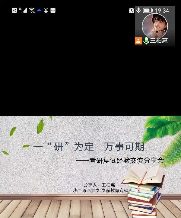 交流会上,王柏惠学姐为大家介绍了复试的准备工作、注意事项及推荐书目等,并通过自己的考研经历,针对远程复试应具备的物质条件、复试常考的热点话题、应对突发状况等问题向同学们做了详细的讲解。答疑环节中,王柏惠学姐悉心解答了同学们的疑惑,并提出了许多关于考研录取的中肯建议,鼓励学子们坚定信心,不畏风雨!