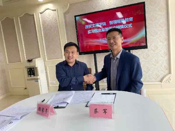 最后,蔡军与张家粤代表双方签署实习就业基地协议,副董事长韩权向智领明珠教育集团创始人米莹进行了授牌仪式。