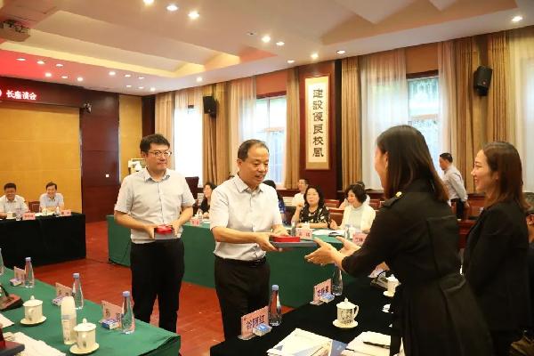 王育选为员工逐一赠送了纪念品,对大家的成长以及取得的成绩感到自豪,并对长期以来情系母校、关心支持母校建设与发展的广大员工们表示衷心的感谢。