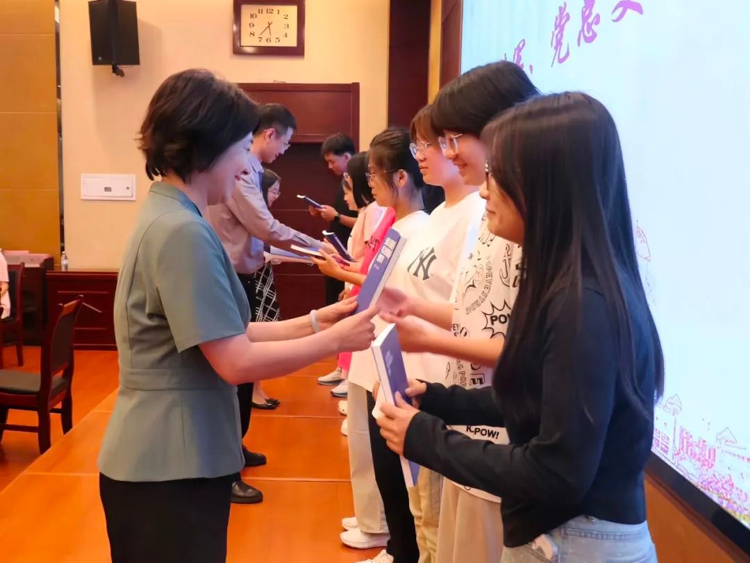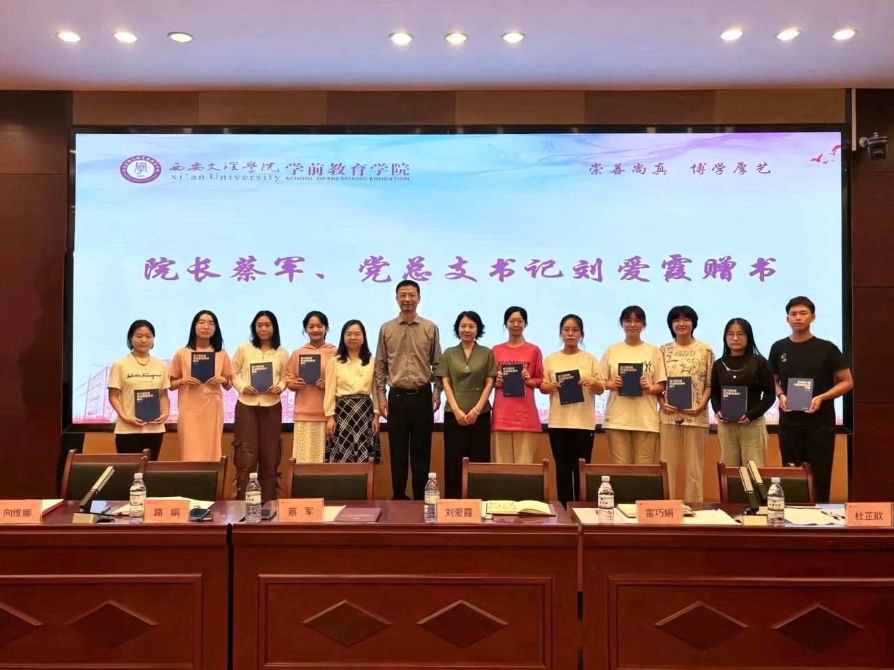 接下来进入到温馨庄重的赠书环节。经理蔡军、党总支书记刘爱霞、副经理路娟为2024级创新实验班员工赠书。经理将自己的著作《幼儿园教师专业核心素养研究》赠予同学们,勉励大家坚定理想信念,勤于探索学习,勇攀专业高峰。