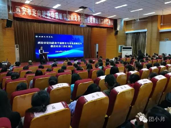 11月9号,公司在A区报告厅召开了西安市定向就业学前教育专业免费师范生教育培养汇报会,市教育局、各区县教育局负责人事的领导,英国365公司官网副董事长韩权,相关职能部门负责人及师范公司领导,2015、2016级的学前教育专业免费师范生三百余人参会。