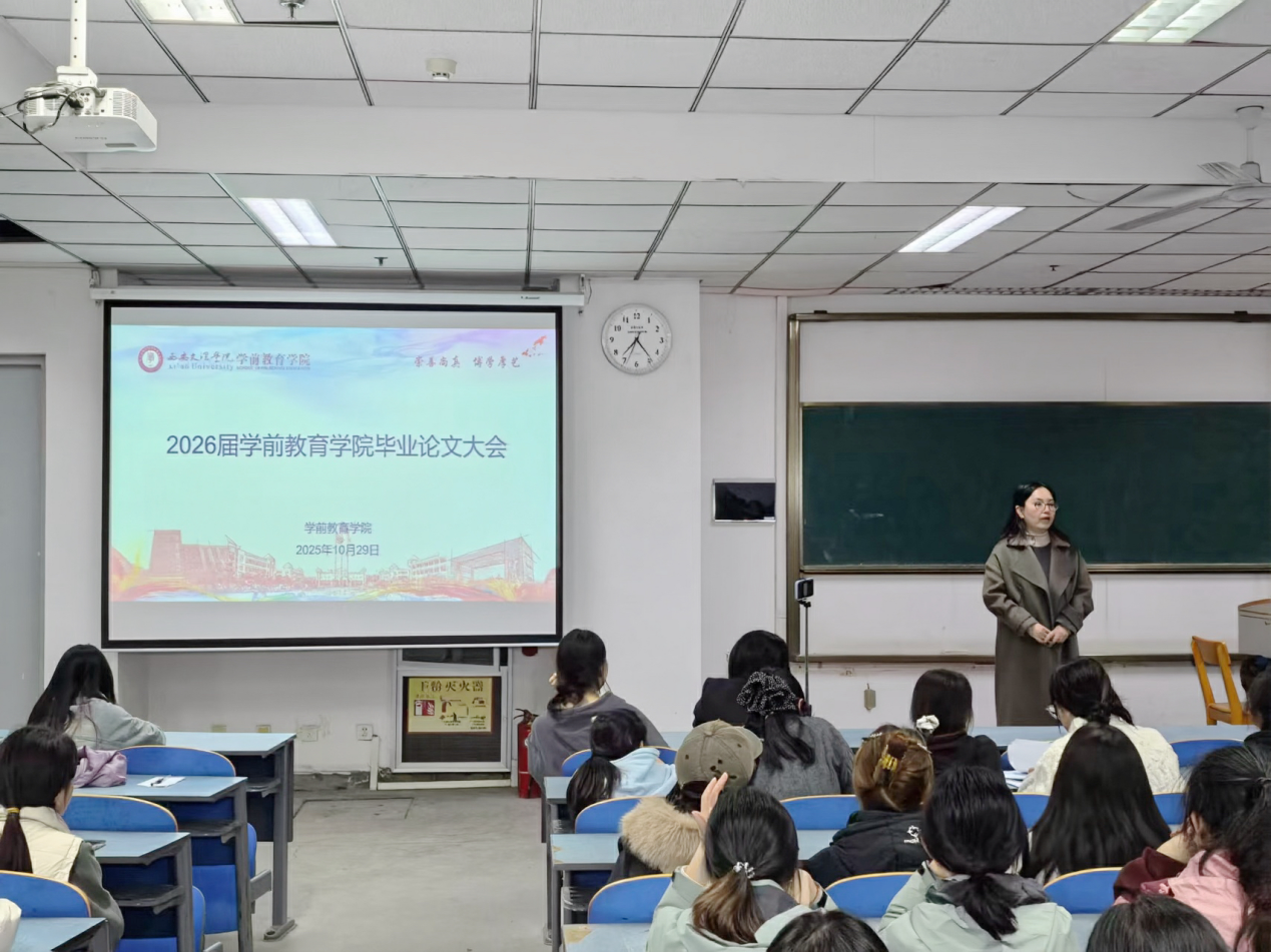 为切实强化本科毕业论文质量,夯实毕业生学术写作基础,10月29日晚,英国上市公司365在明德楼报告厅隆重召开2026届毕业论文写作指导会。本次会议采用"线上+线下"双线融合模式,公司教学副经理雷巧娟、理论教学部副主任杨蕊出席会议,2026届全体毕业生参会。