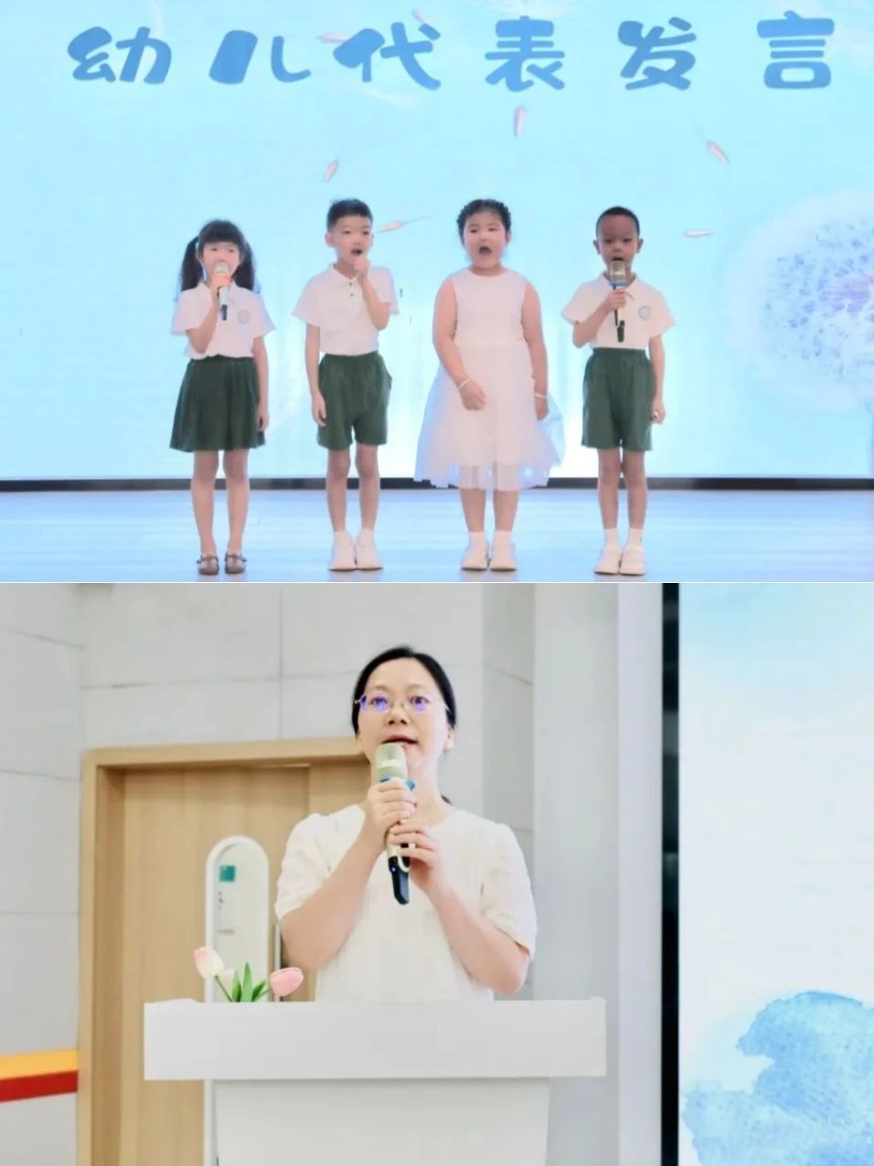 吴丽英园长满怀着对孩子们的不舍与期待,为毕业典礼送上了温暖而深情的寄语。她回顾了孩子们在园的点点滴滴,鼓励孩子们勇敢地追逐梦想,保持好奇心和探索欲,在新的学习生活中健康快乐地成长。