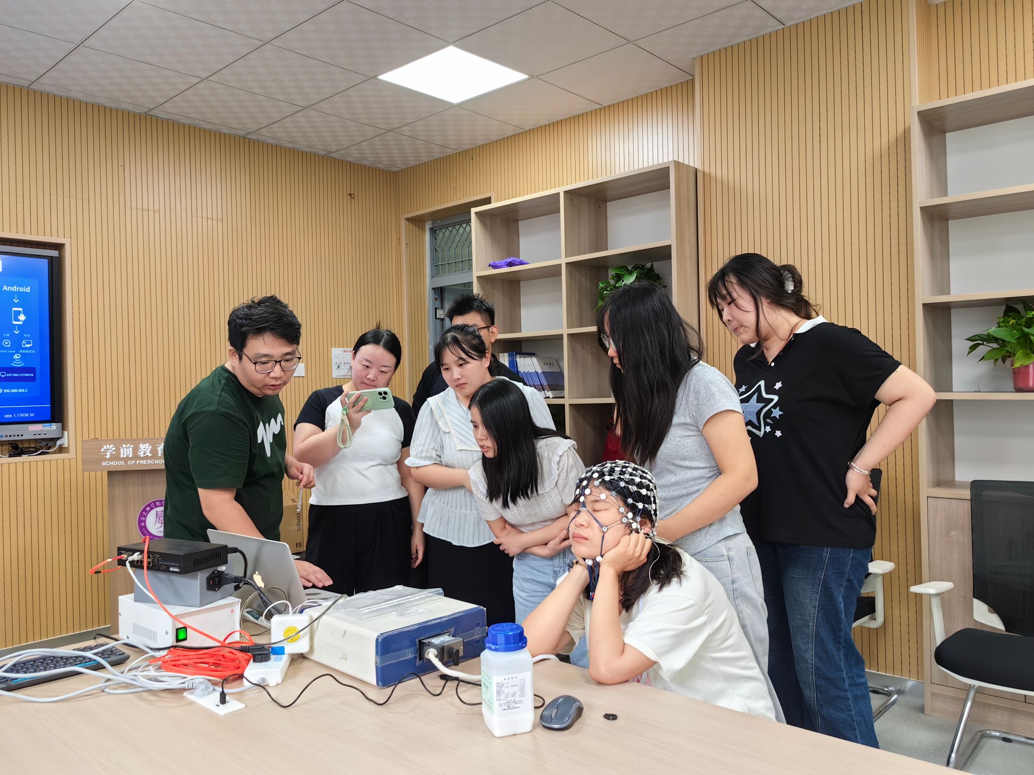 培训会集中演示了Tobii眼动仪、Biopac生理多导仪、近红外脑功能成像系统及EGI高密度脑电系统等总值超600万元的先进科研设备,并请全体研究生进行了深度体验。培训会让师生切身感受了儿童发展研究领域先进的实验仪器,了解了学科发展的前沿动态。