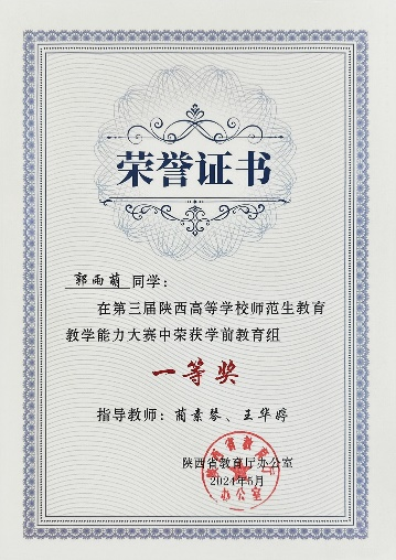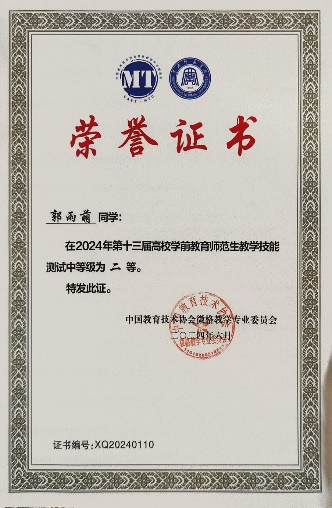 第十三届高校学前教育师范生教学技能测试二等奖
