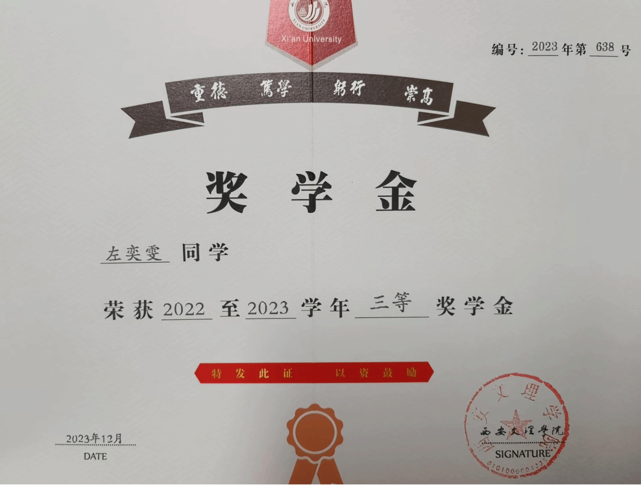 2022-2023学年校级二等奖学金