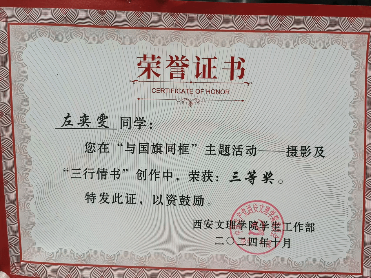获得荣誉: