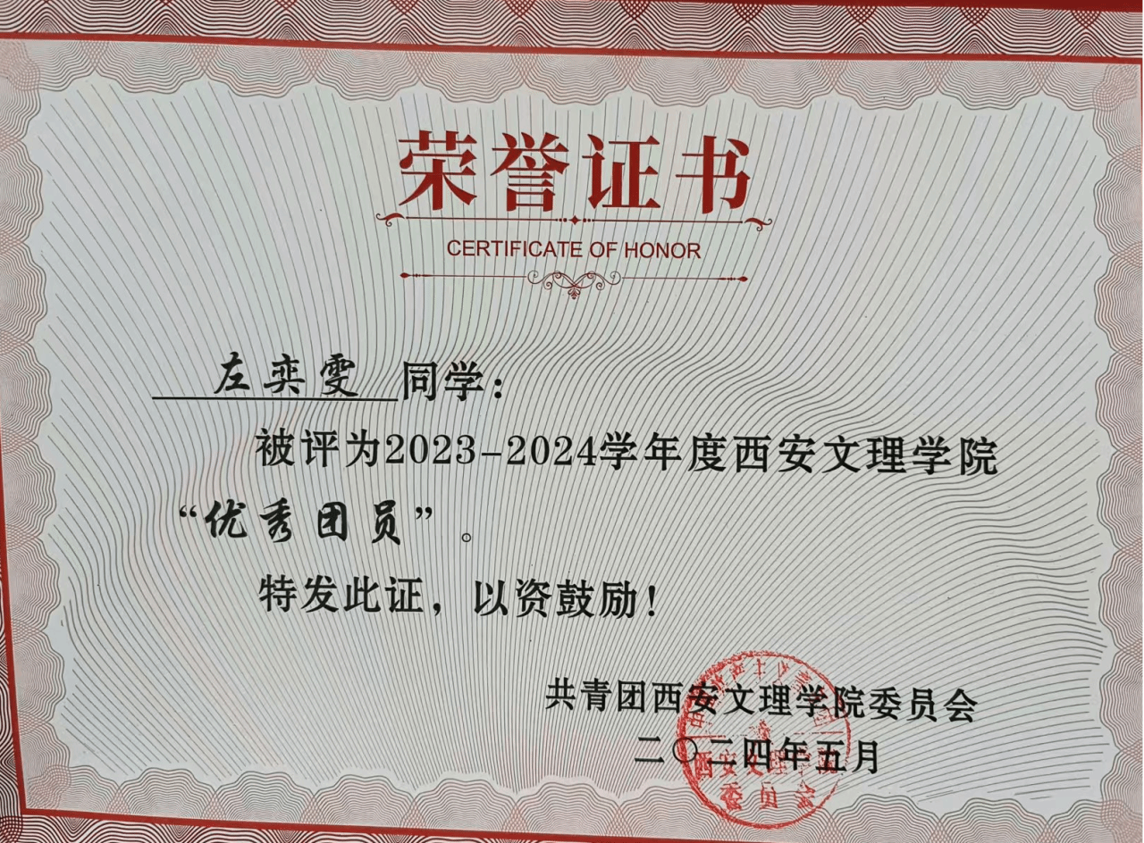 获2023-2024学年度校级“优秀团员”称号