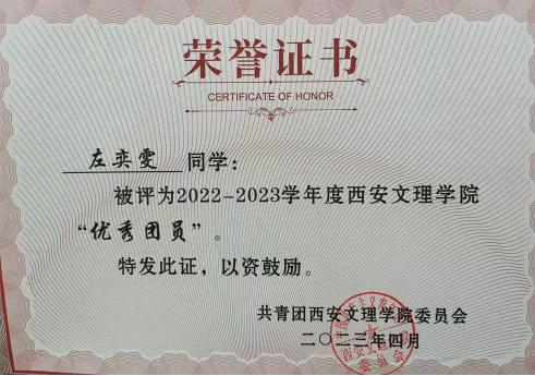 2022-2023学年被评为校级优秀共青团员