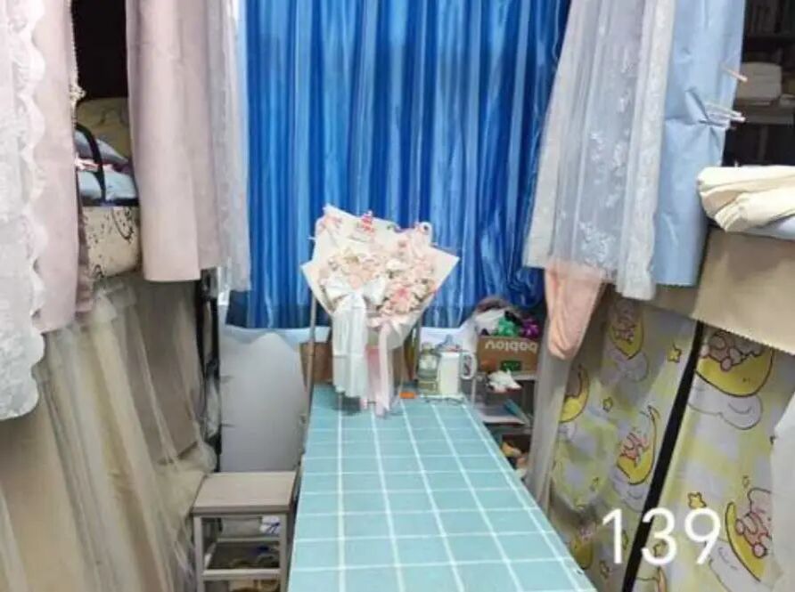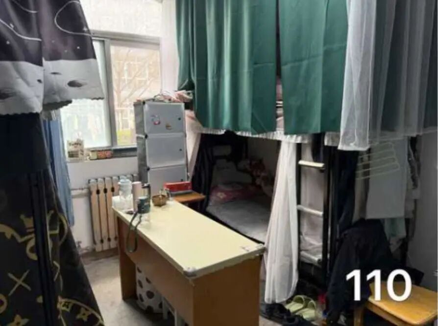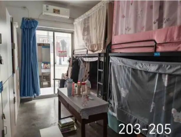环境整洁规范:室内地面干净清爽,桌面与个人物品摆放整齐有序,床铺被褥整理规范,物品收纳分区明晰,整体空间清爽舒适;