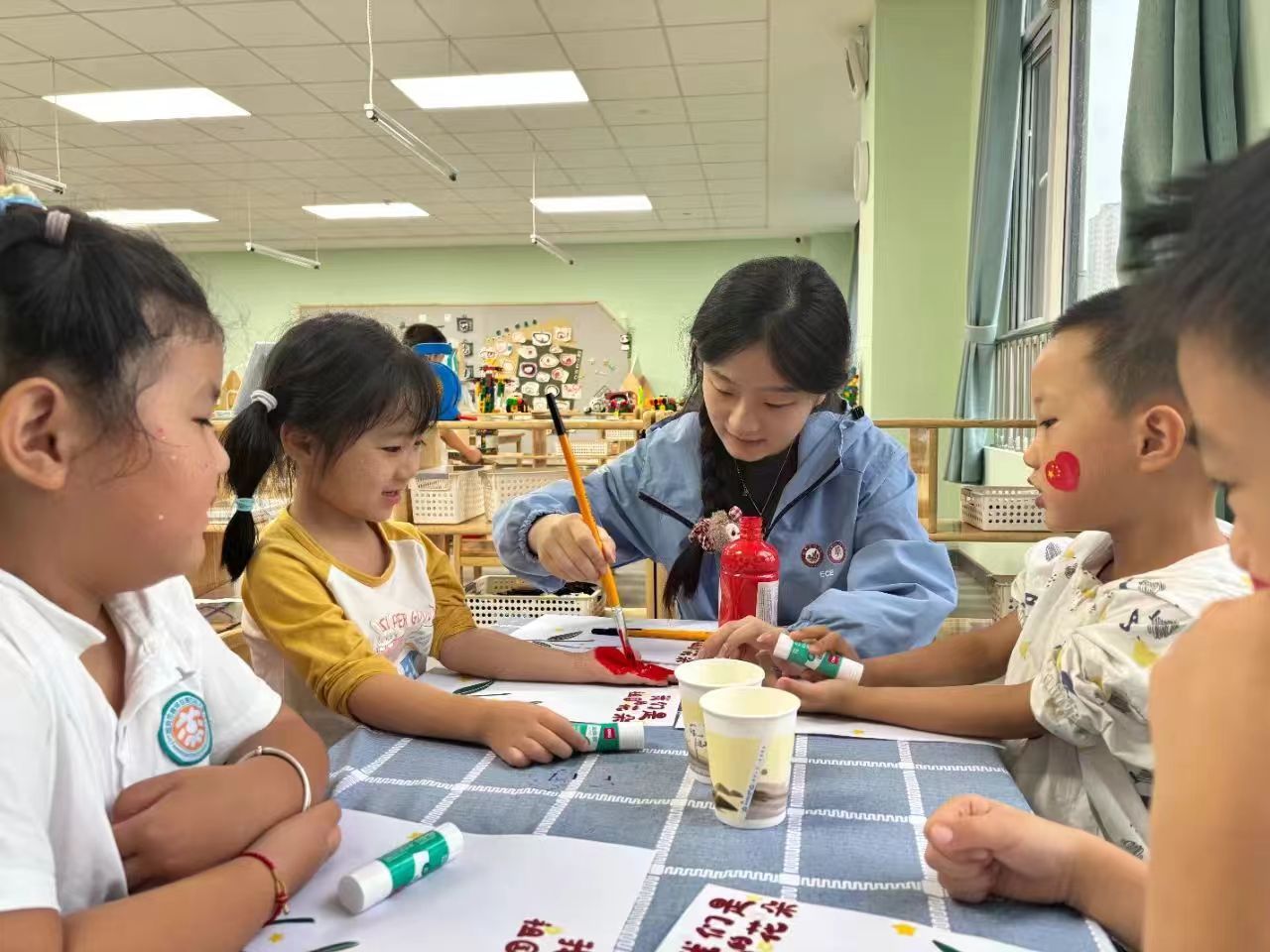 随后,党员先锋队员工组织了别开生面的手工制作活动。在党员们的悉心指导下,孩子们用彩纸、剪刀和胶水等材料,亲手制作了象征祖国的五星红旗等手工作品。党员们在教授手工技艺的同时,深入讲解了五星红旗的象征意义,增强了孩子们的民族自豪感和对祖国的深厚感情。通过这一体验式教学,孩子们在动手实践中更加深刻地体会到了国庆的意义。