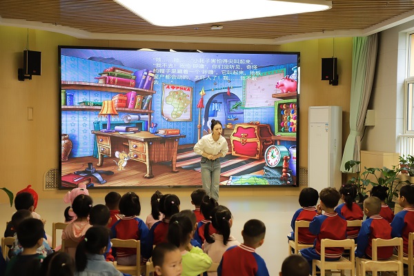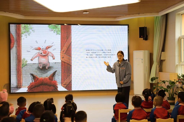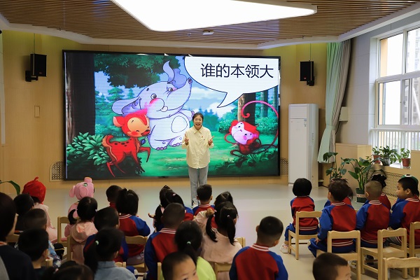 随后,王婉婷和张雨桐为小朋友们带来了故事《谁的本领大》《我的幸运一天》。她们通过提问与交流和小朋友们积极互动,用充满童趣的语言和动作让小朋友们沉浸在故事中。