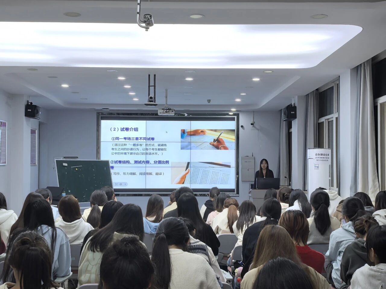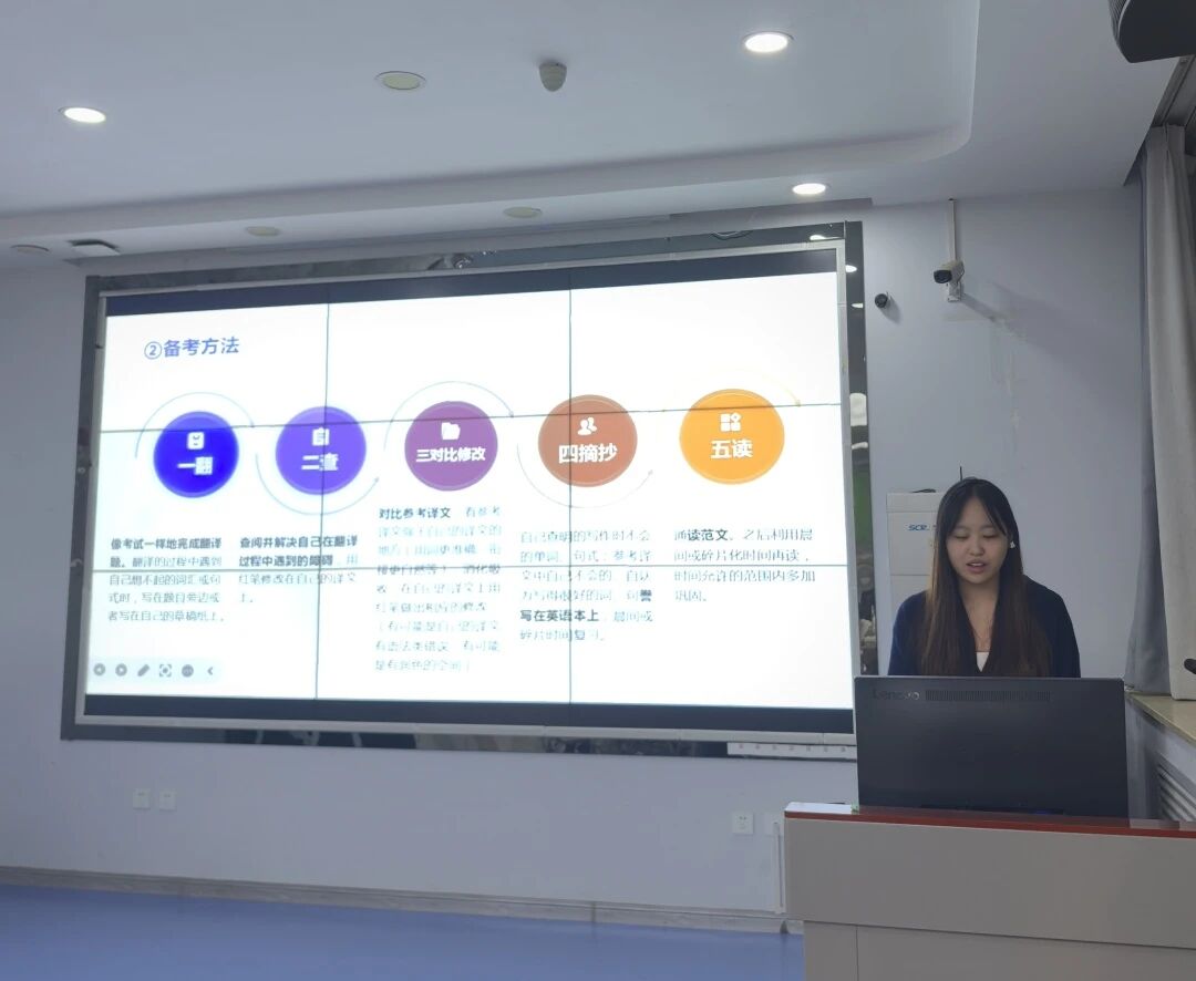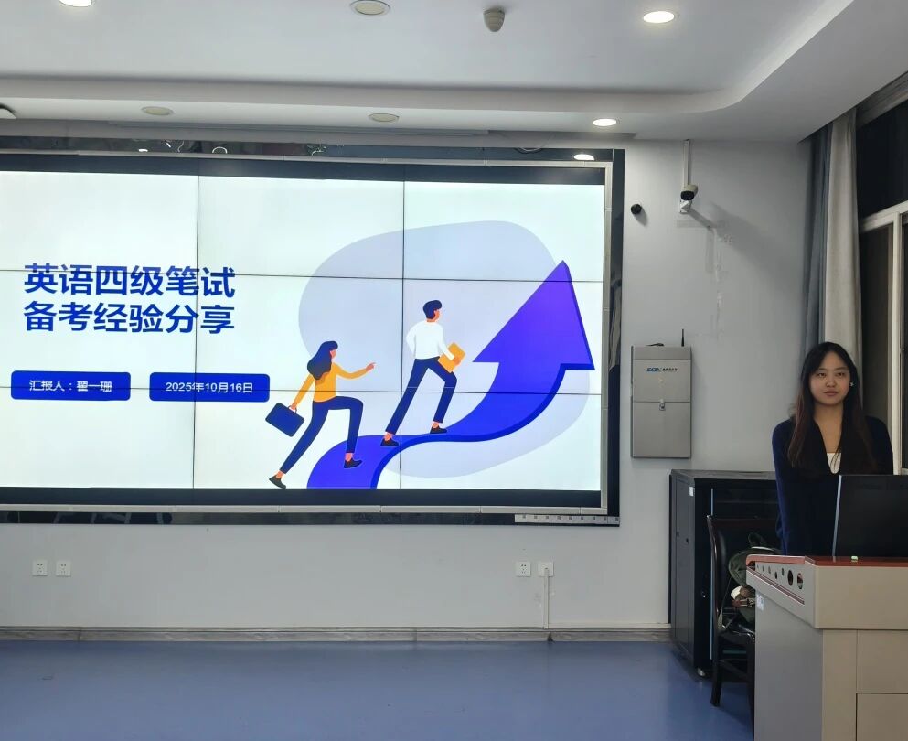 为助力2025级员工高效备考大学英语四级,公司“笃学”党员先锋示范团队于10月16日19:00在H201教室组织开展了英语四级备考经验分享会。活动特邀在四级考试中取得优异成绩的翟一珊同学担任主讲,围绕备考策略与应试技巧进行了系统分享。