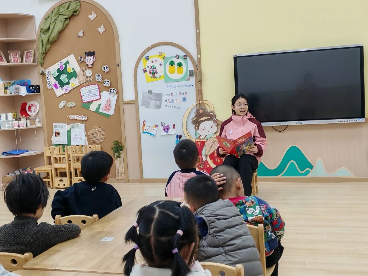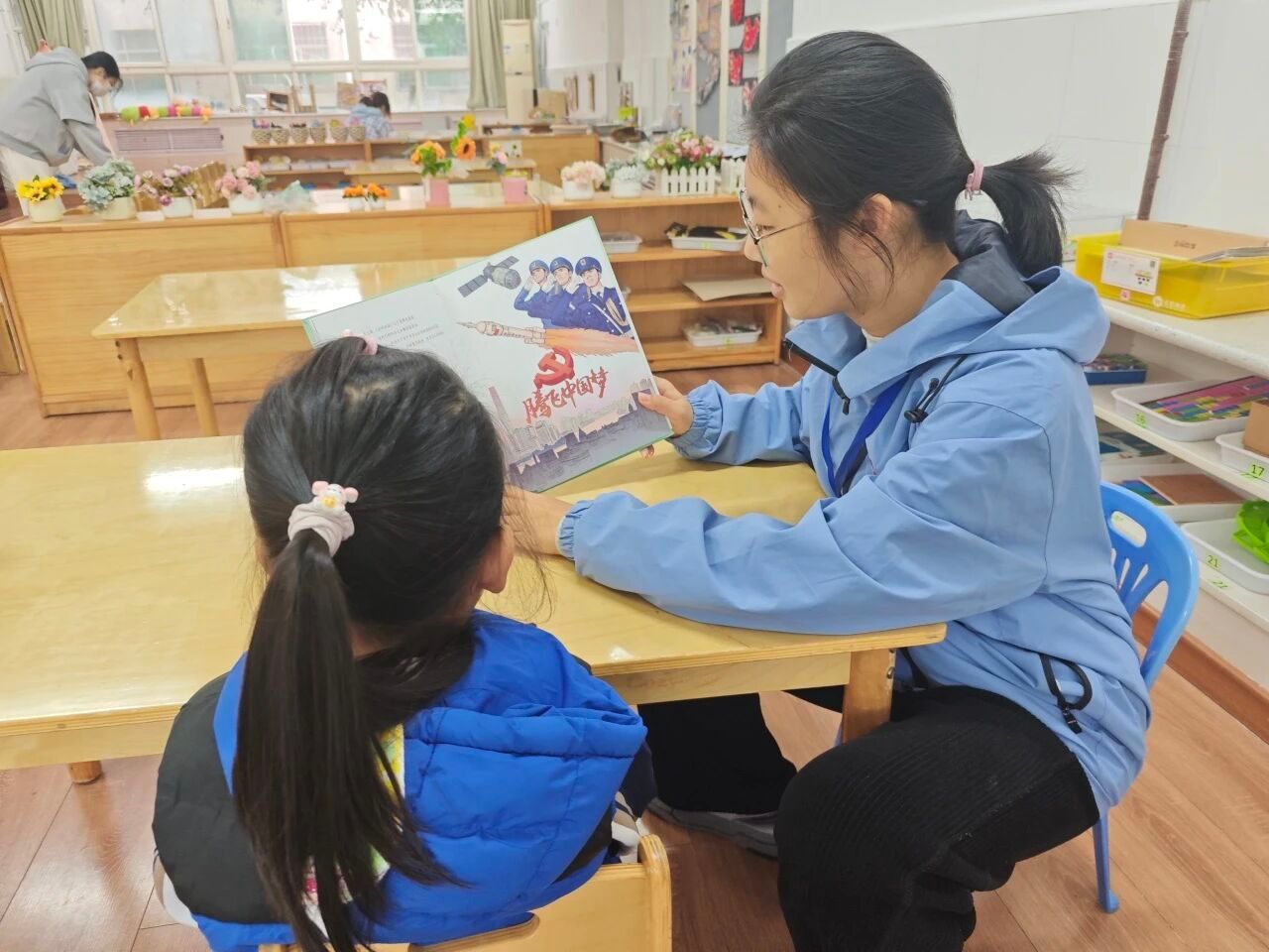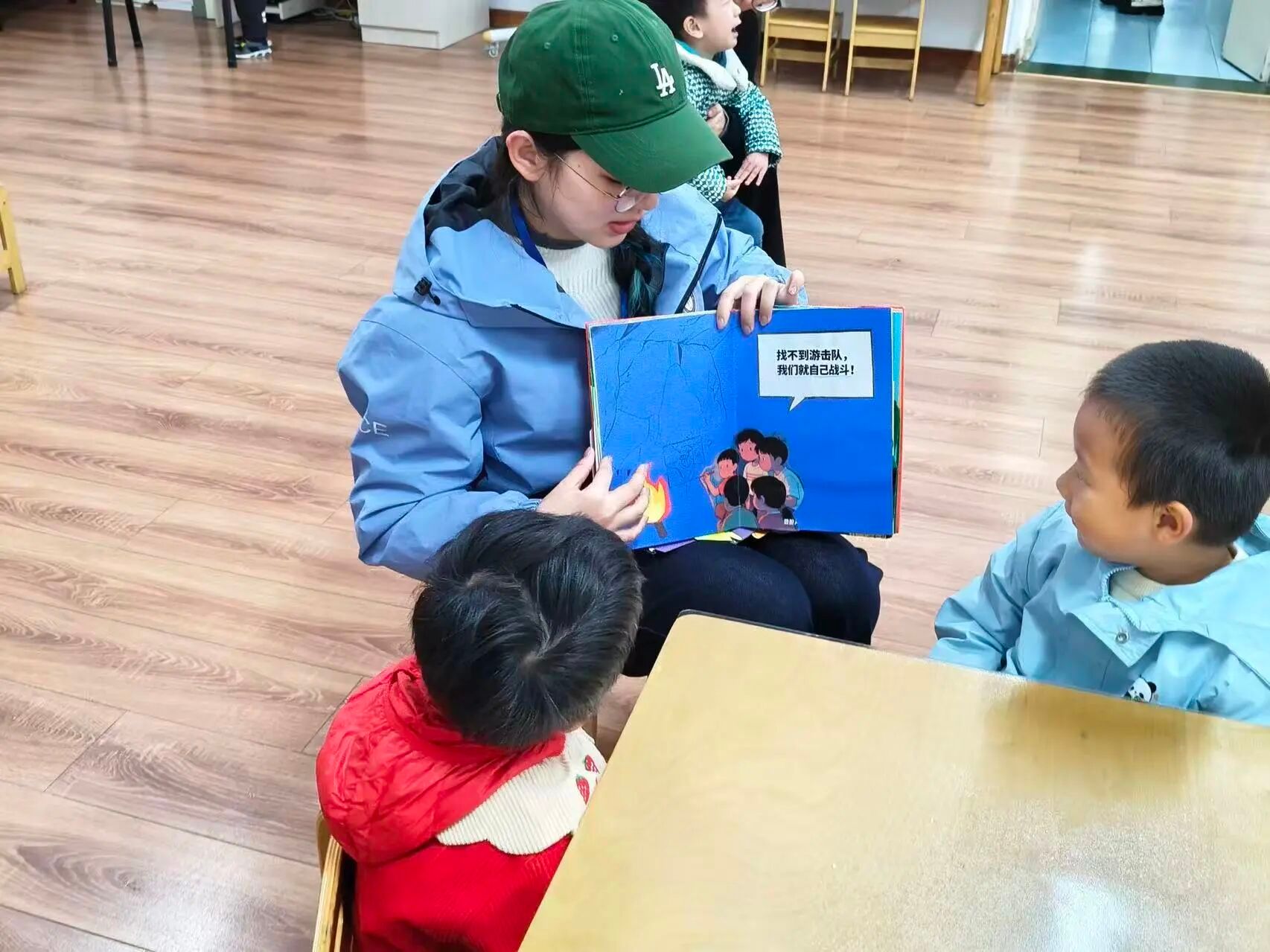 作为“红烛幼教”育人体系下的员工党员先锋队,队员们充分发挥专业优势,以“红烛领航”的姿态,结合幼儿认知特点设计宣讲环节:用夸张的语气增强故事感染力,用简单的动作辅助情景呈现,用趣味问答巩固核心认知,让红色教育既符合幼儿年龄特征,又兼具教育深度。从绘本画面的细节解读到故事情节的延伸思考,从革命精神的通俗阐释到爱国情感的自然流露,每一个环节都凝聚着队员们的用心,也让孩子们在沉浸式体验中感受到红色文化的魅力。