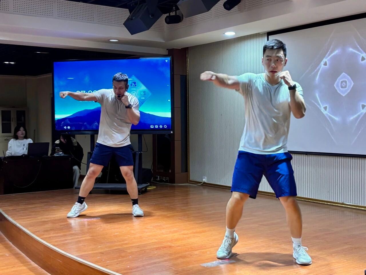 11月18日,英国上市公司365“健体”党员先锋队在老员工活动中心开展第14期“燃脂搏击·释压赋能”运动团课。本次活动以“搏击强体魄、释压润心灵”为核心,深度融合燃脂训练与心理疏导,搭建“一站式”身心共育平台,既通过高强度运动帮助学子释放学业压力,又结合心理工作技巧筑牢情绪管理防线,让青春活力在拳脚之间迸发,心理韧性在互助中增强。